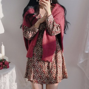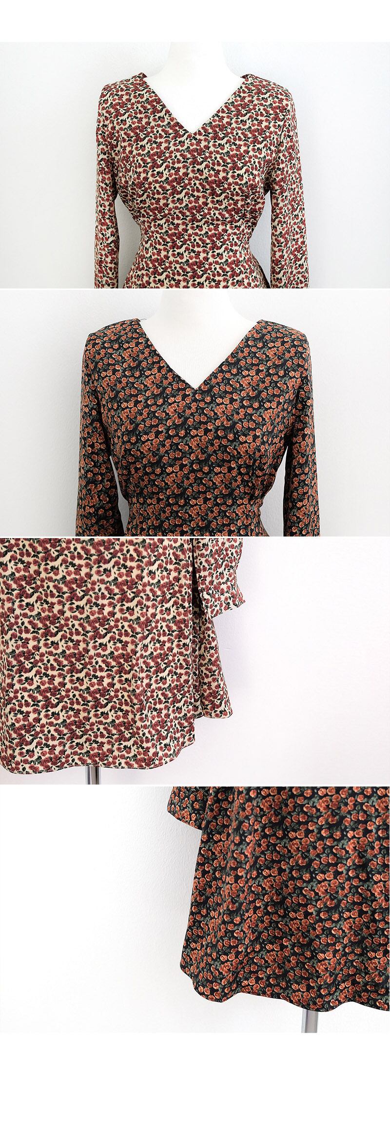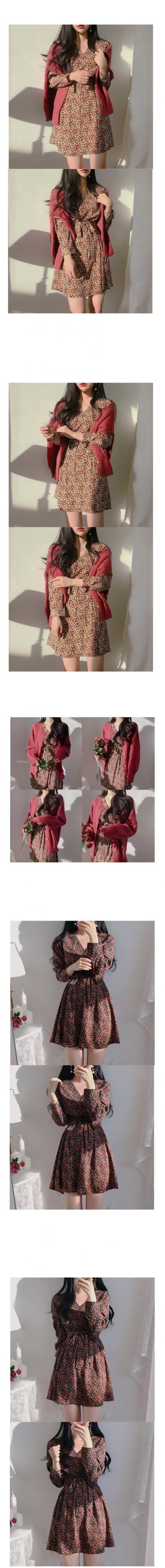 2020年春の新しいVネックスモールフローラル長袖シフォンドレスフレンチレトロベルフラワーウエストボトミングスカート 韓国婦人53539906326