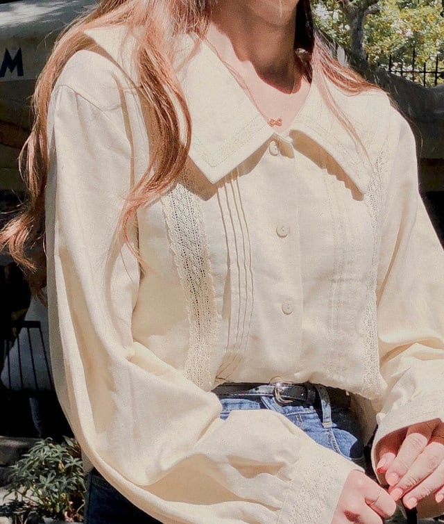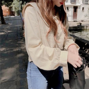 ゴーストホースシックな秋新しいワイルドシャツ女性のレース人形の襟ルーズ長袖シャツは薄かった 韓国婦人61885045214