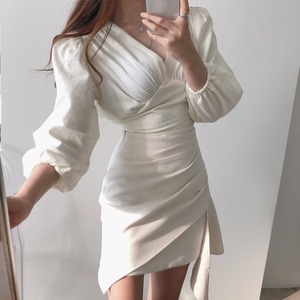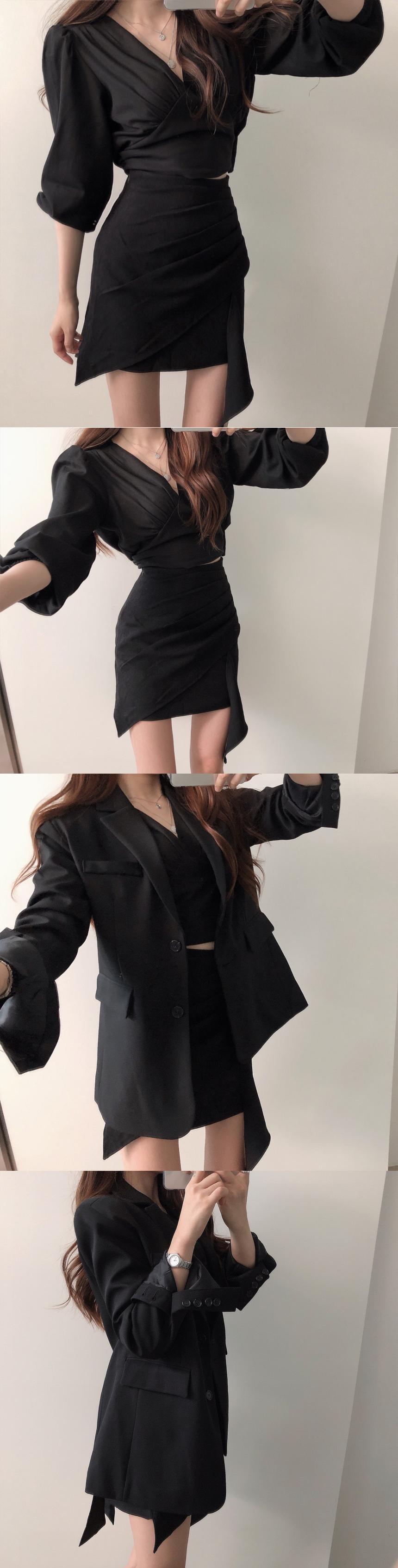 シックなニッチなデザインセンスバックネクタイVネックショートシャツ+ハイウエストイレギュラーヒップスカートメス 韓国婦人57721155627