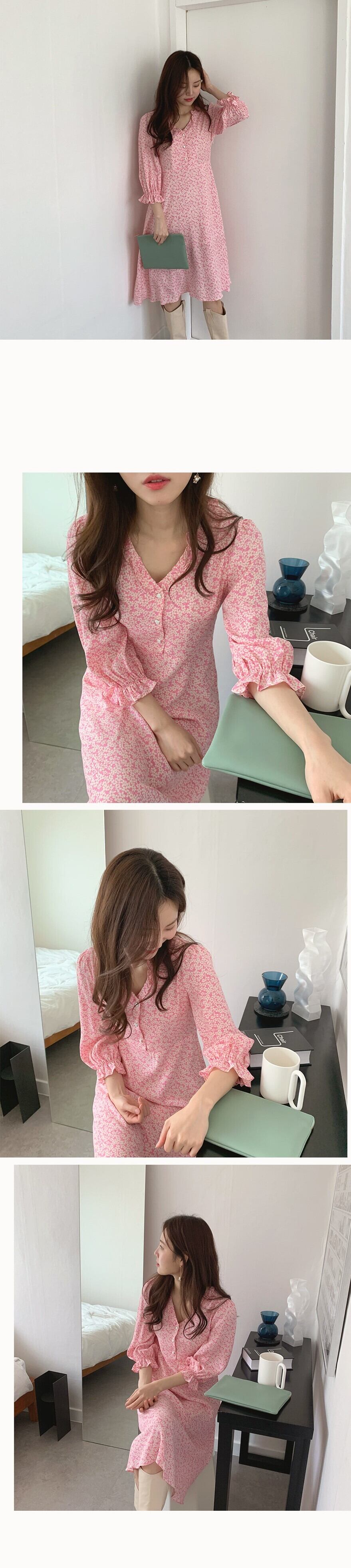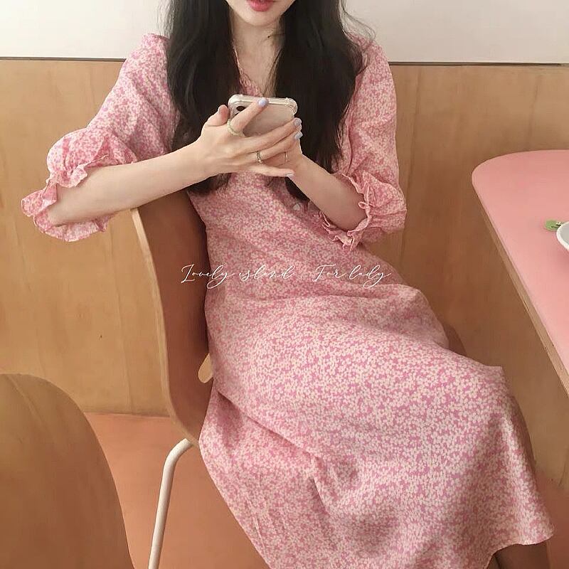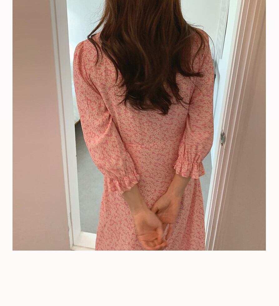 2020年春夏新作シックレトロスウィートフレンチスタイルソフトライトピンクスモールフローラルドレスレディース 韓国婦人20232957575