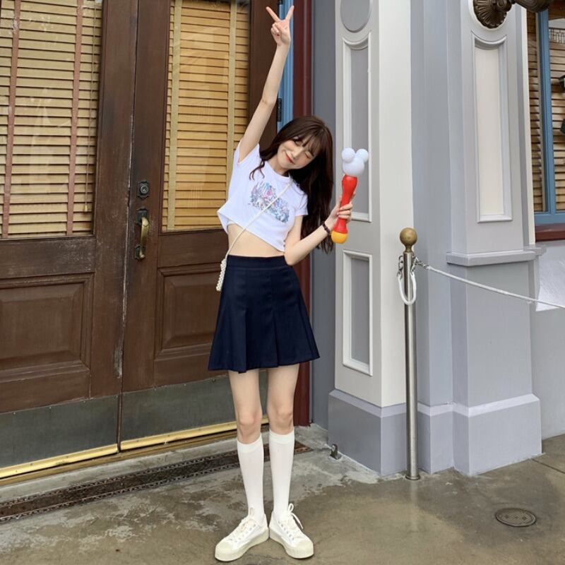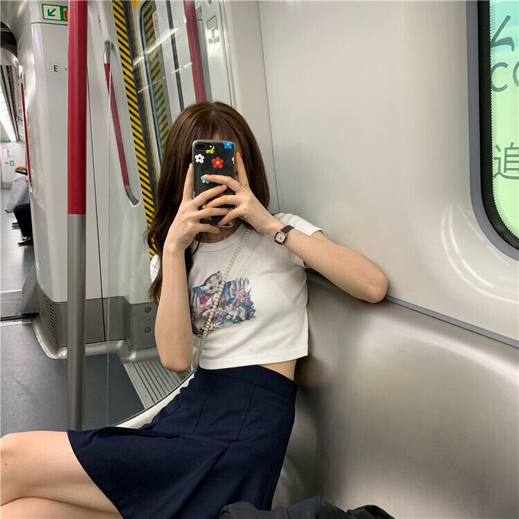 ネットセレブ半袖Tシャツ女性インスーパーファイアショートハイウエストおへそ露出Xuanyaスタイルの陰謀デザインニッチスリムトップ 韓国婦人30301731898