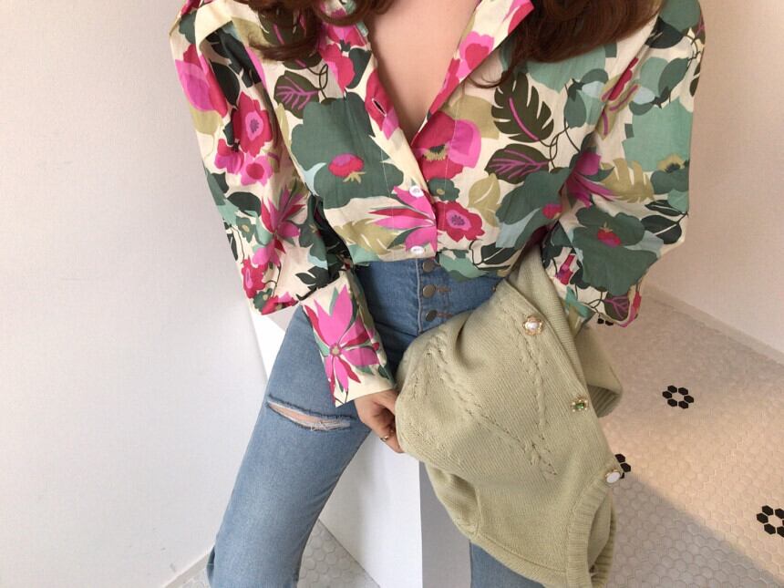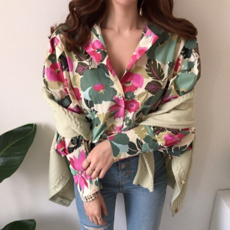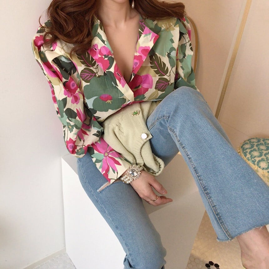 シックな早春ファッショナブルなカラーラペルシングルブレストブラウスオールマッチ年齢削減ルーズランタン長袖シャツ女性 韓国婦人15684157318