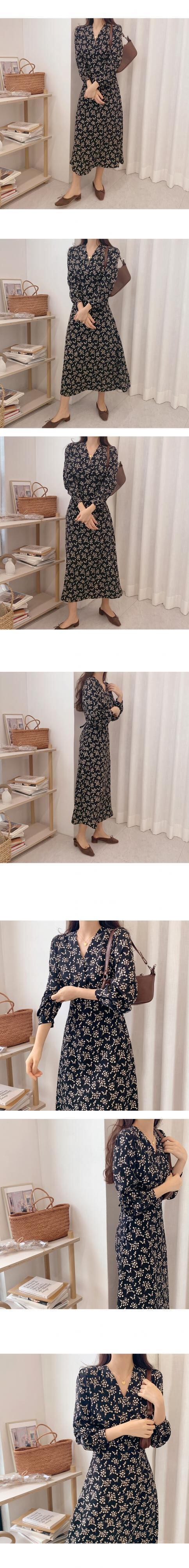 小さくて新鮮で甘いスカートの女性2020年秋新しいシンプルなスタイルの女性の長袖花柄ドレスミドル丈 韓国婦人22345035479