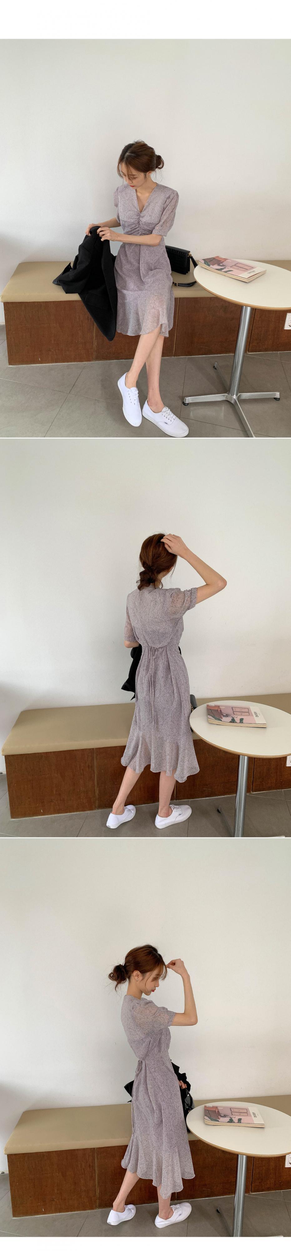 シックな夏の優しいフローラルVネックプリーツ慎重に機械細いウエストフィッシュテールドレスロングスカート女性 韓国婦人87600842656