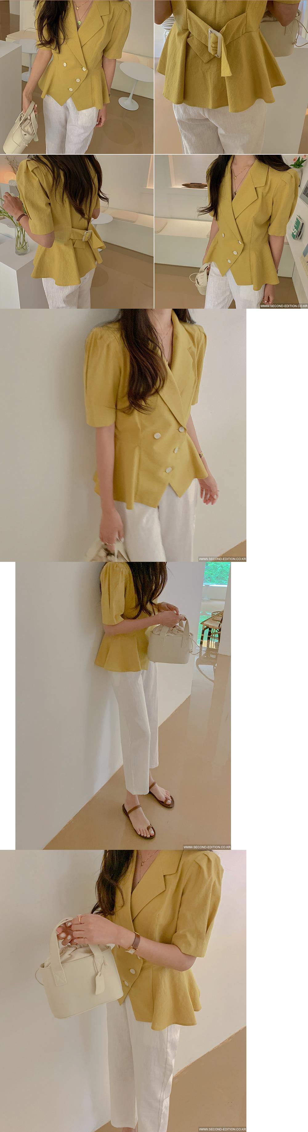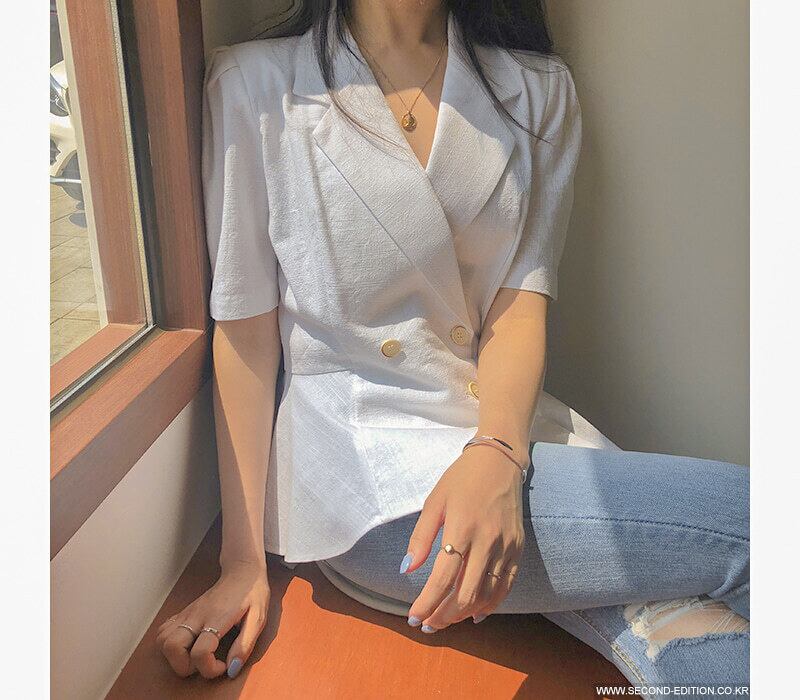 パーソナリティ斜めバックル裾不規則トップ半袖スーツジャケット女性と夏の新しいインバックレース 韓国婦人24516245071