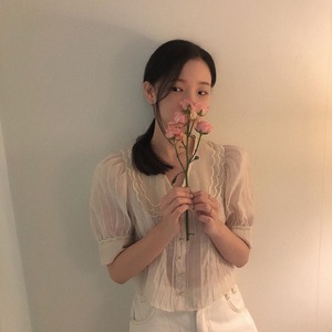 シックな年齢削減甘い人形の襟シックなボタンプリーツルーズショートパフスリーブシャツトップ女性 韓国婦人42798319106
