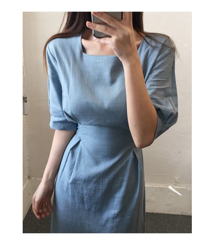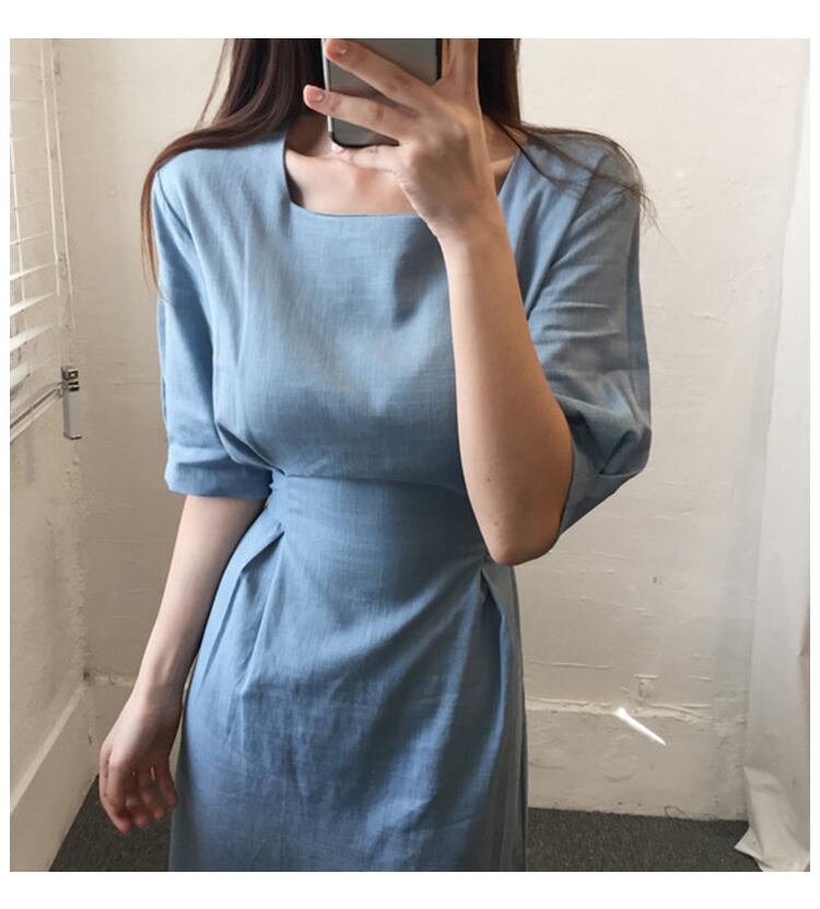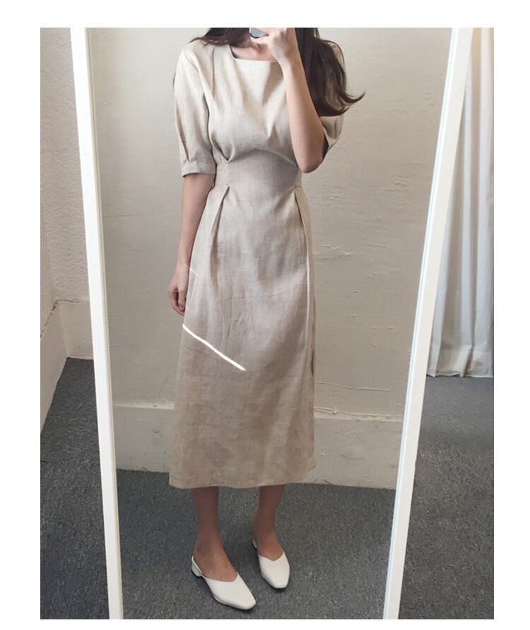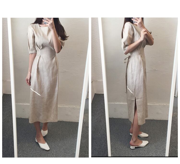 気質レトロスクエアカラーコットンとリネンドレス2020新しい女性の夏のリネンレースアップスリムウエストスリムスカート 韓国婦人34915020682
