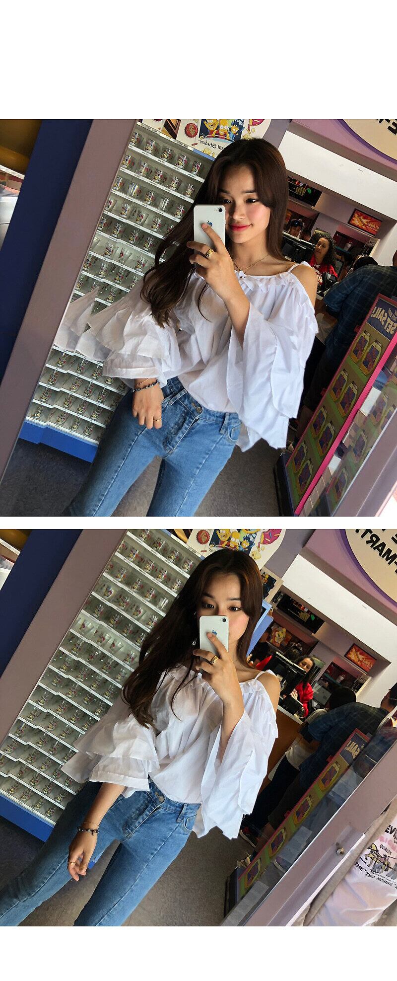 シックなウエスタンスタイルの小さなセクシーなワンラインカラーストラップレス木製の耳ルーズショートホーンスリーブサスペンダーシャツ女性 韓国婦人65537145259