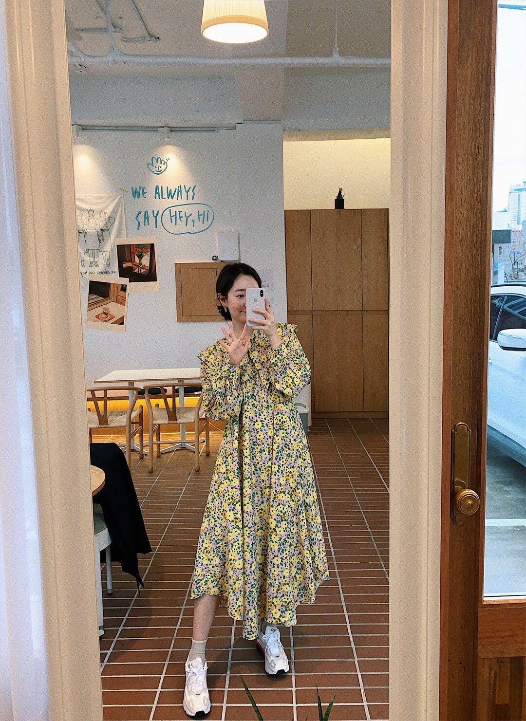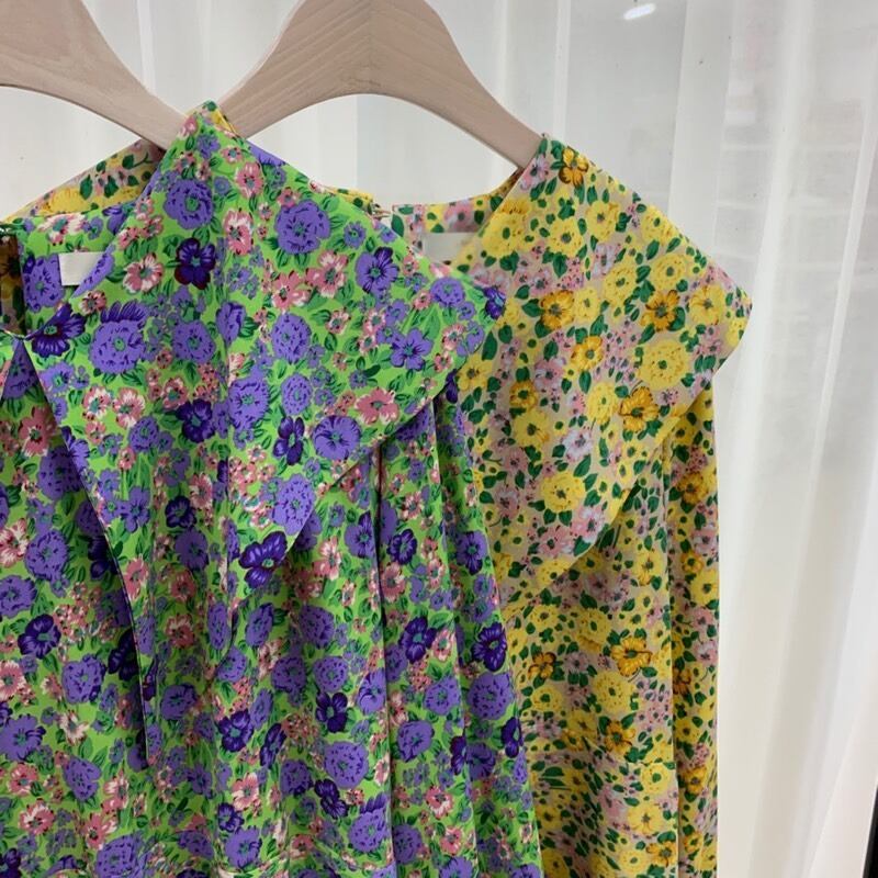 ゴーストホーススタイルシックレトロスウィートウエスタンスタイル減少年齢フローラルルーズシフォンプリントロングドレス女性 韓国婦人19875911122