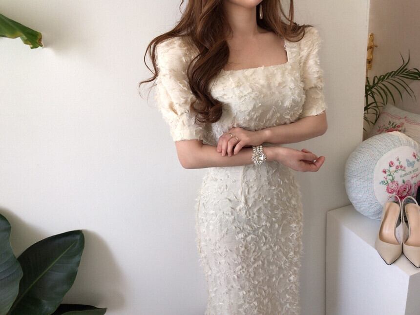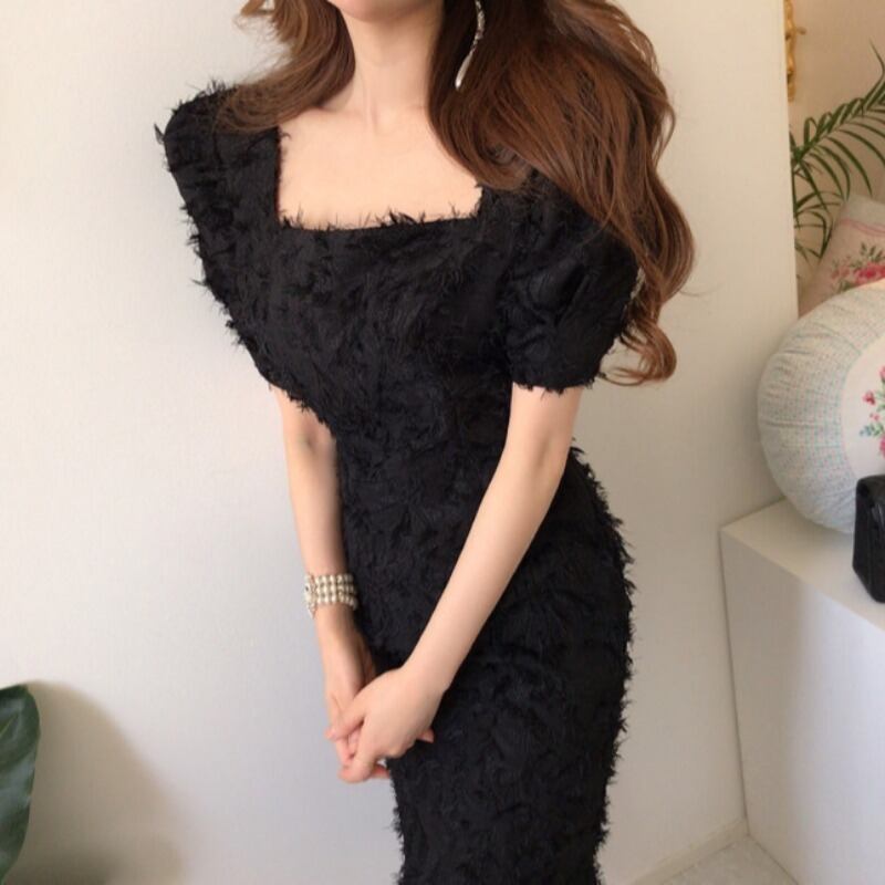フランスのレトロなスクエアカラーフェザーテルバッグヒップドレス軽く調理された気質道路北は薄いスカートでした 韓国婦人22919427984