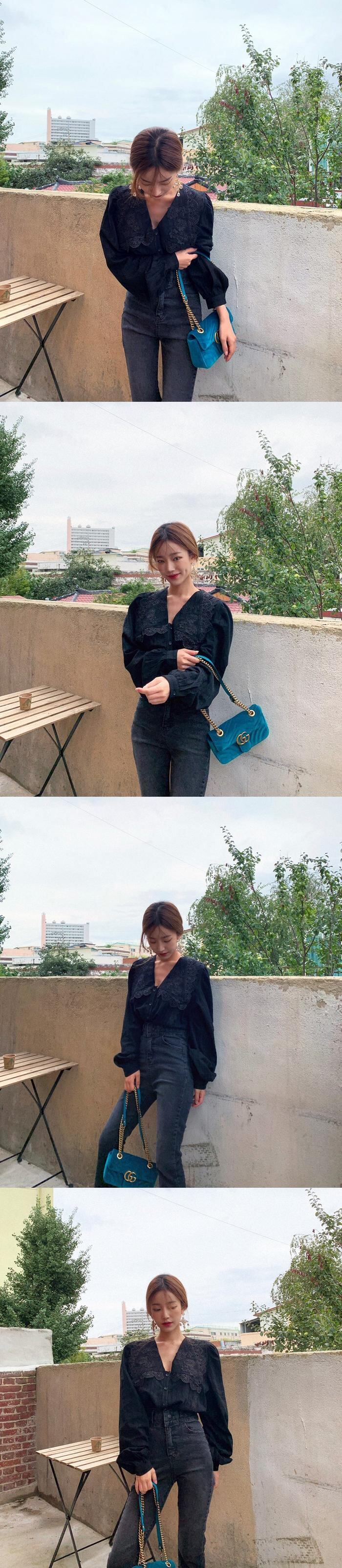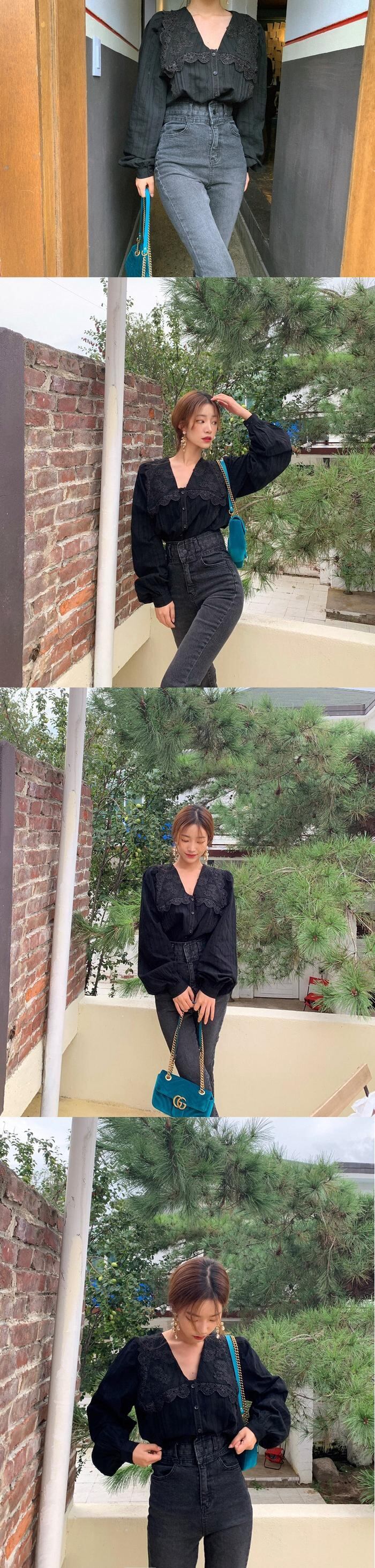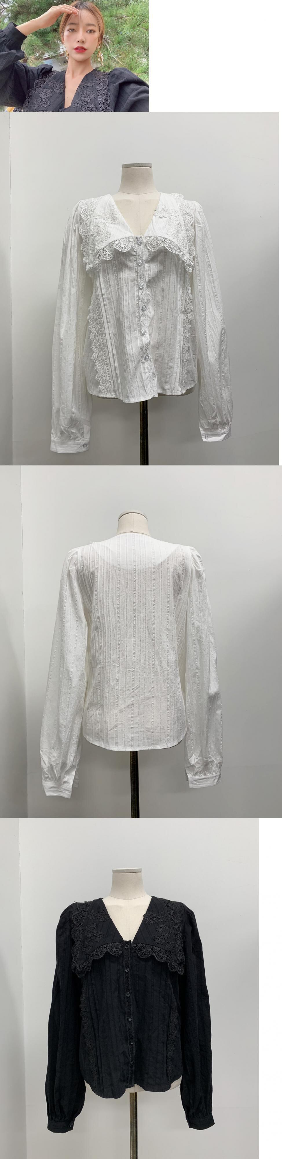 ニッチレトロフレンチシャツ女性秋ニュースタイルバブル長袖シャツレースステッチトップ 韓国婦人94974745751