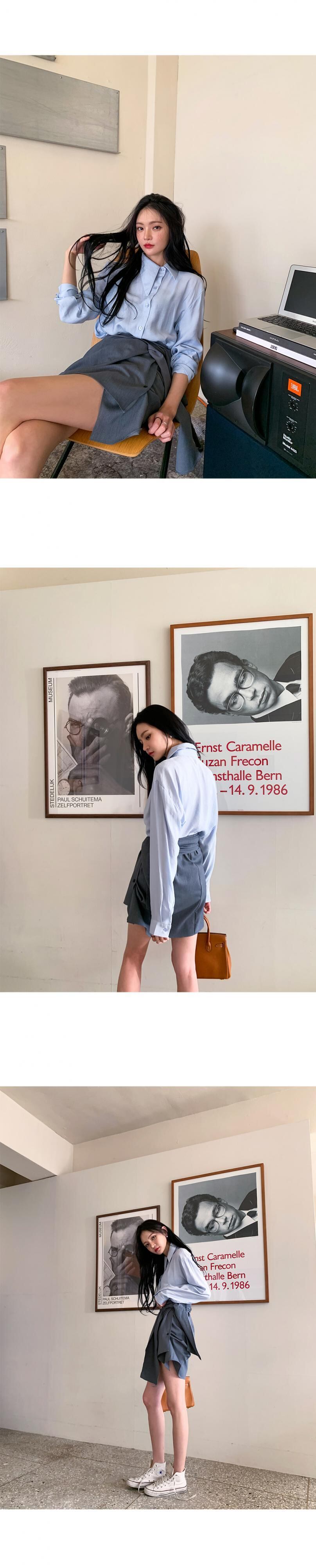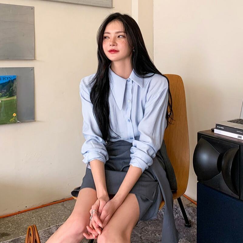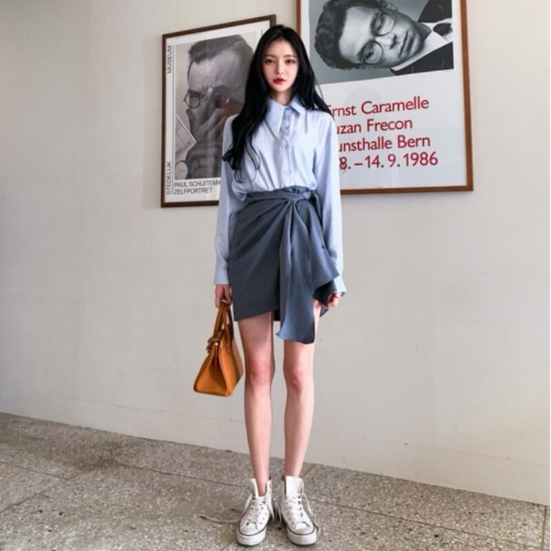 シックなオールマッチラペルシングルブレスト薄手の長袖シャツ+ハイウエストイレギュラースカートスカートスーツ 韓国婦人3474580660