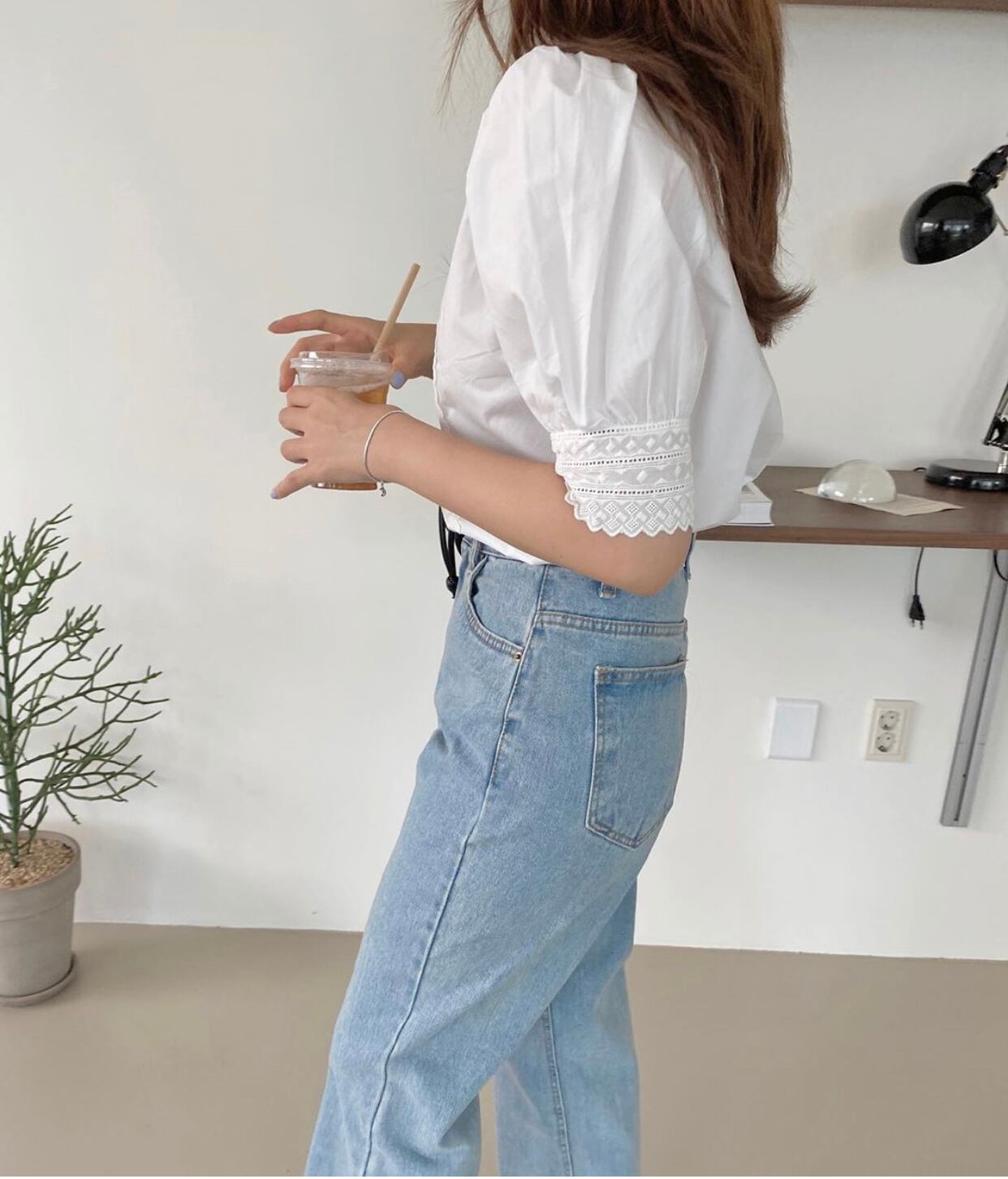 シックなレトロなウエスタンスタイルのスタンドアップカラー重工業刺繍ステッチ中空ルーズ無地パフスリーブシャツシャツ女性 韓国婦人28236533641