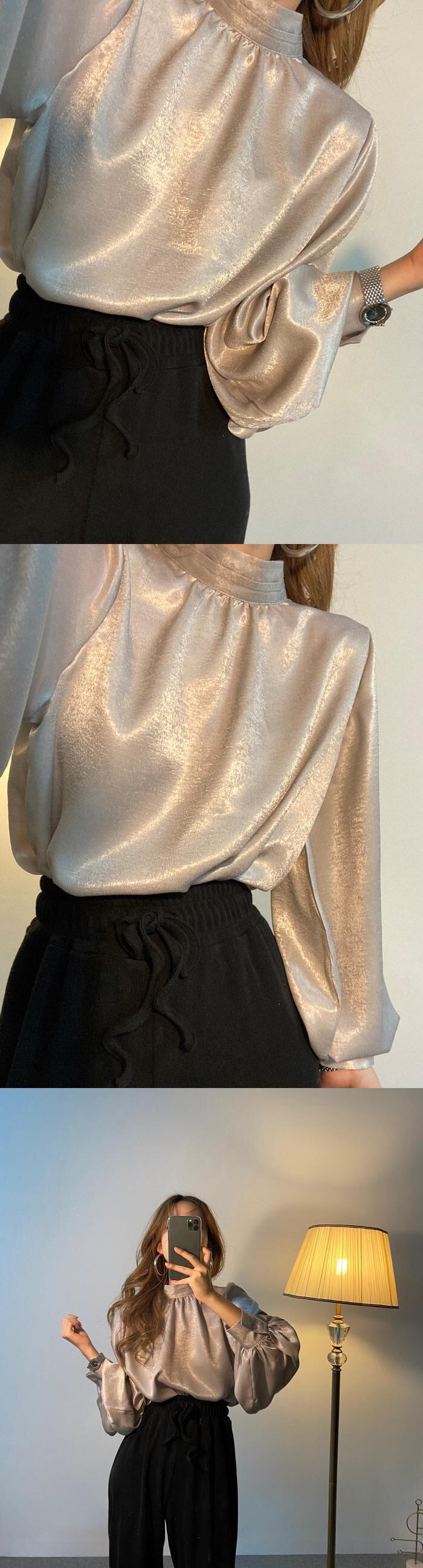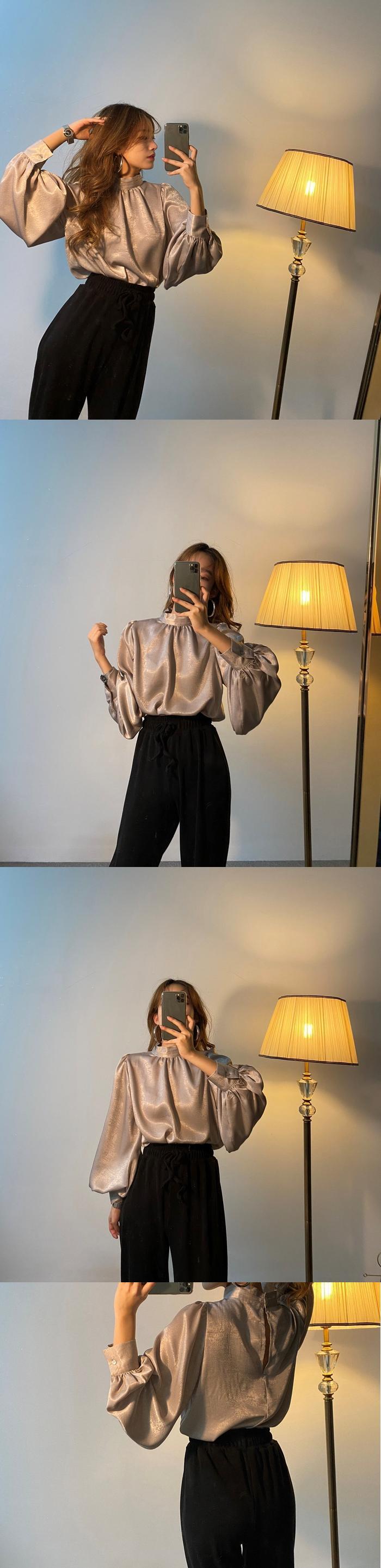 2020年春のインニッチ気質レディーススタイル小さなスタンドカラーレトロランタンスリーブ長袖シャツトップ女性 韓国婦人72376323778