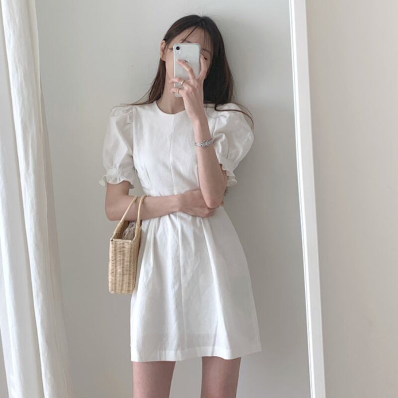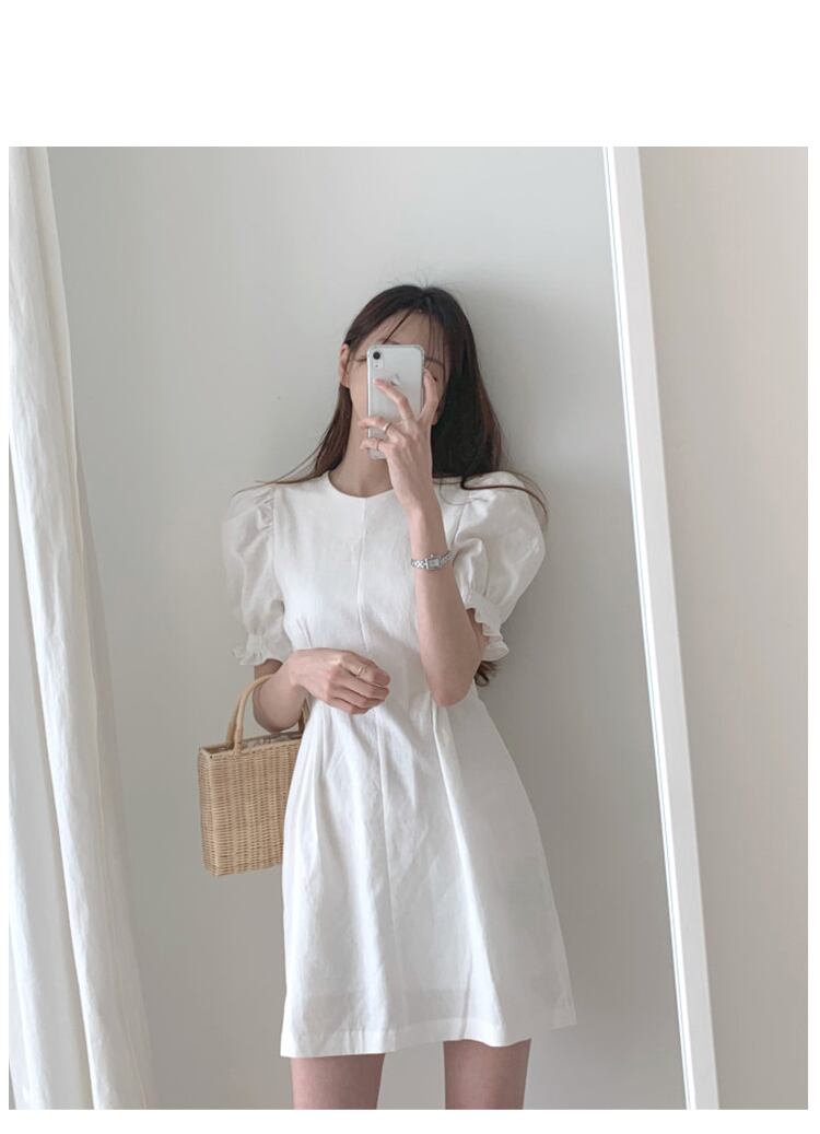 2020年夏の新しいスタイルのコットンとリネンフレンチレトロウエストドレスAラインホワイトスモールフレッシュショートスカートメス 韓国婦人27730020243