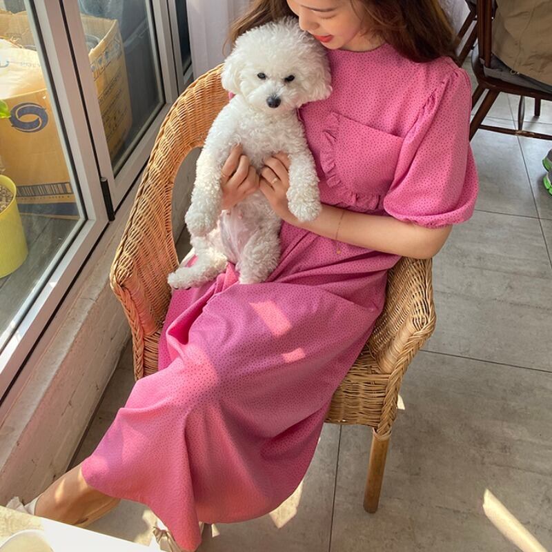 夏のシックな甘くて白い水玉ラウンドネックシンナーレースウエストダブルポケットドレス女性 韓国婦人67249863270