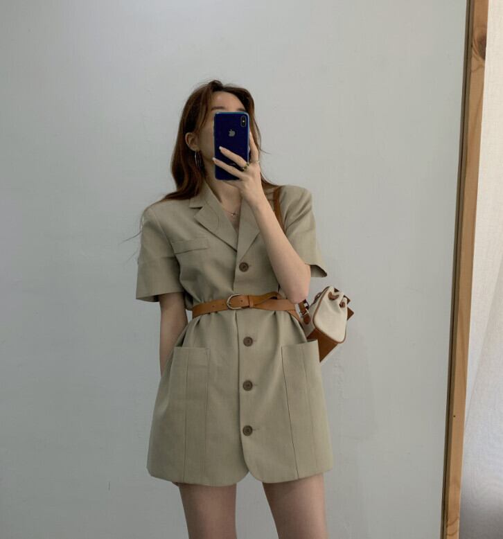 2020年夏新イン気質ラペルベルト気質シャツスカートウエストスーツドレス女性 韓国婦人87211976056