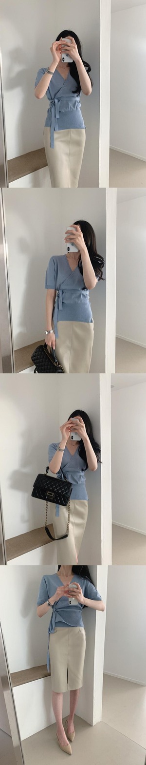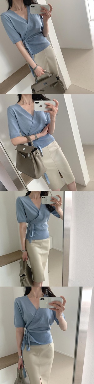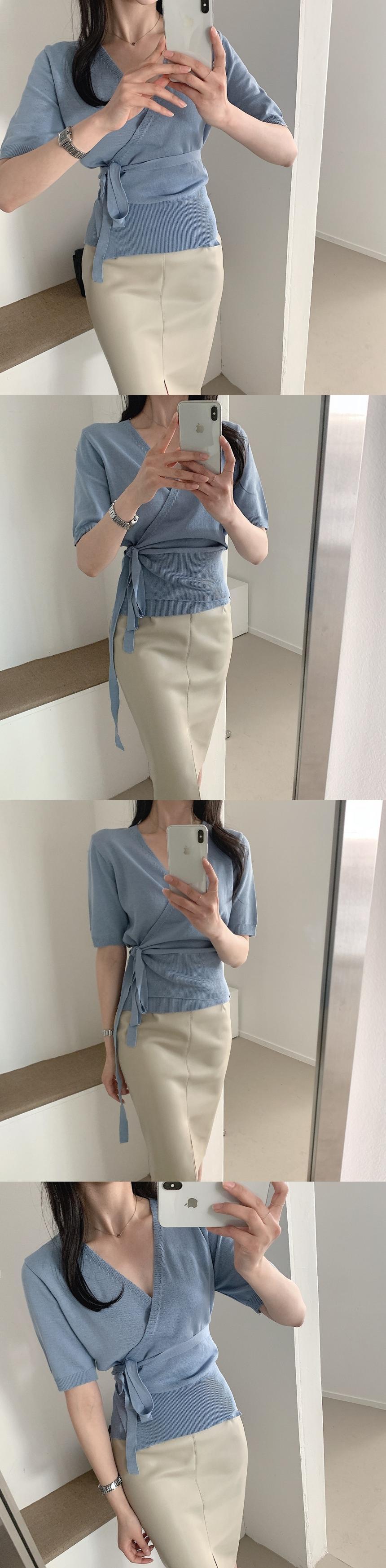 センスニッチクロスVネックミドルスリーブセーター2020新しい女性の夏のレースアップウエストスリミングTシャツトップ 韓国婦人7079642815