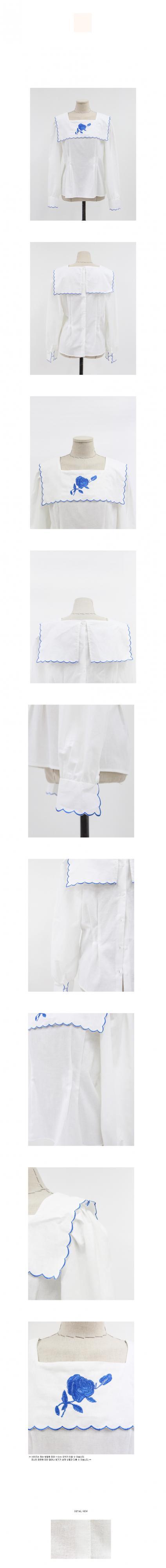 サウスインニッチ気質レトロ絶妙な刺繡花年齢減少ネイビーカラールーズワイルドパフスリーブシャツ 韓国婦人16100797198