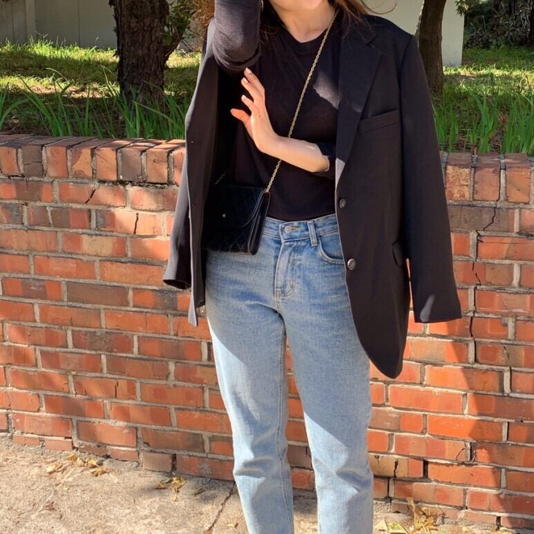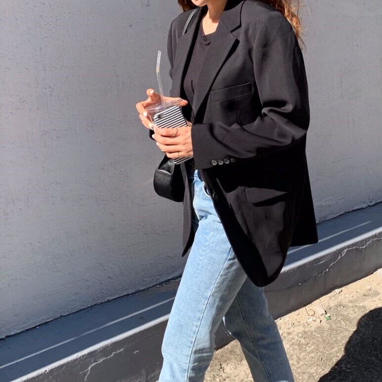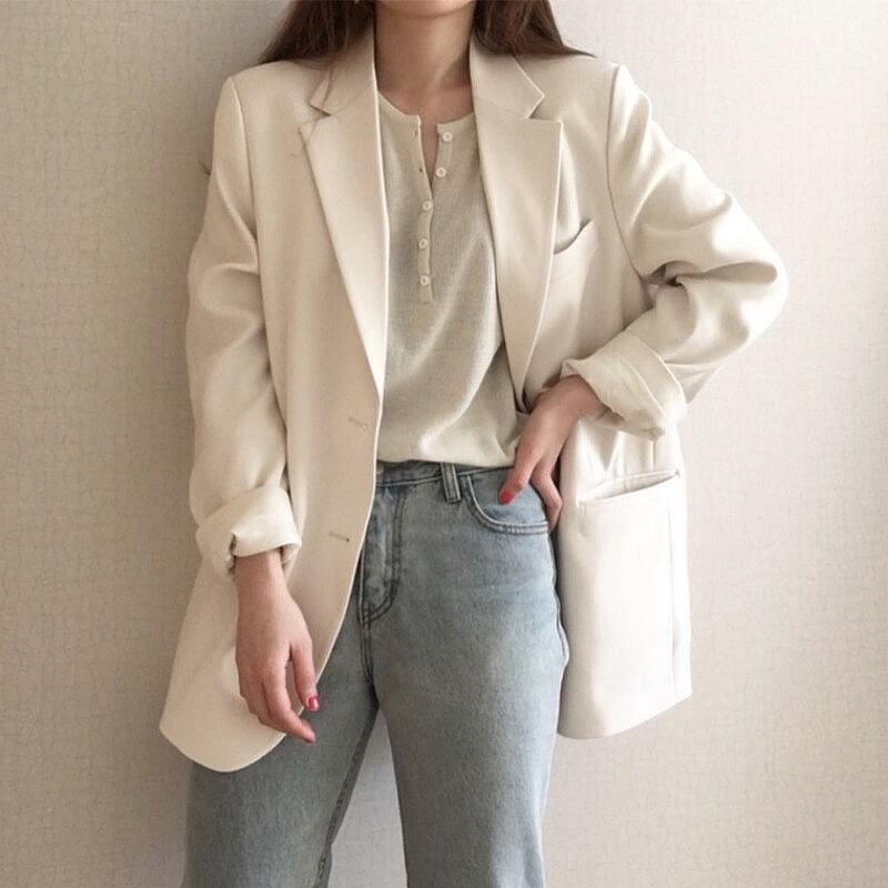 早春インレトロニッチラペル2ボタンルーズワイルド無地ダブルポケットスモールスーツジャケットメス 韓国婦人57895381176