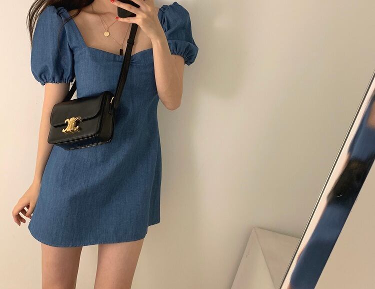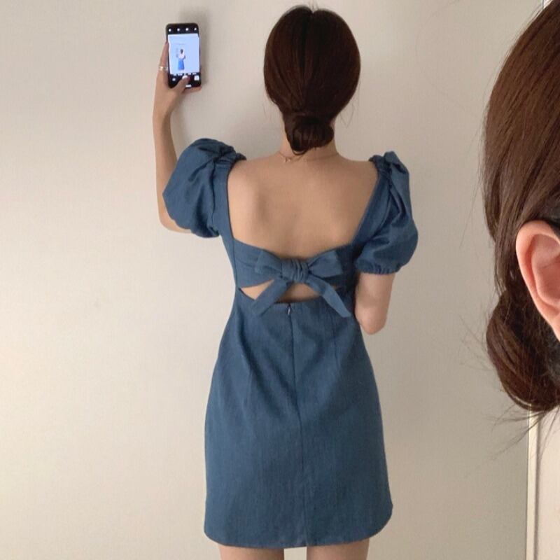 気質セクシーなスクエアネックホルタードレス2020新しい女性の春と夏のレトロなレースアップウエストスリムデニムスカート 韓国婦人27512957737