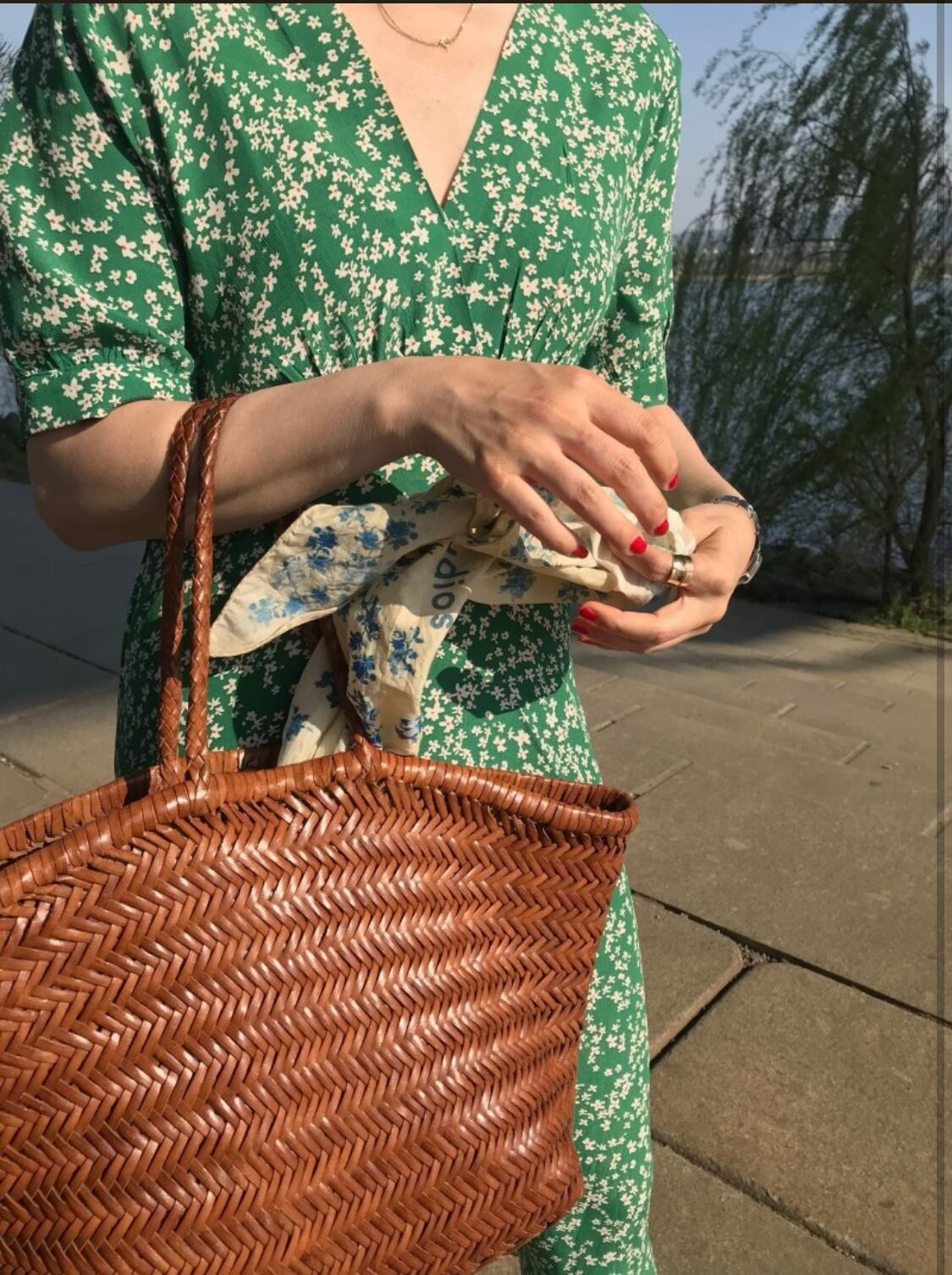 同じ段落の夏のinsブロガー薄い気質ウエストグリーンシフォンスカートVネック半袖ドレス女性 韓国婦人16225315819