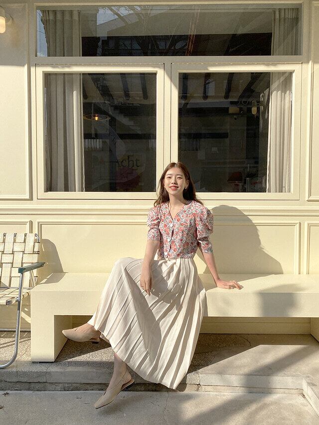 サウスの新しいレトロな気質新鮮な小さなVネックシングルブレストバブル5ポイントスリーブ牧歌的な花柄のショートシャツの女性 韓国婦人39619141456