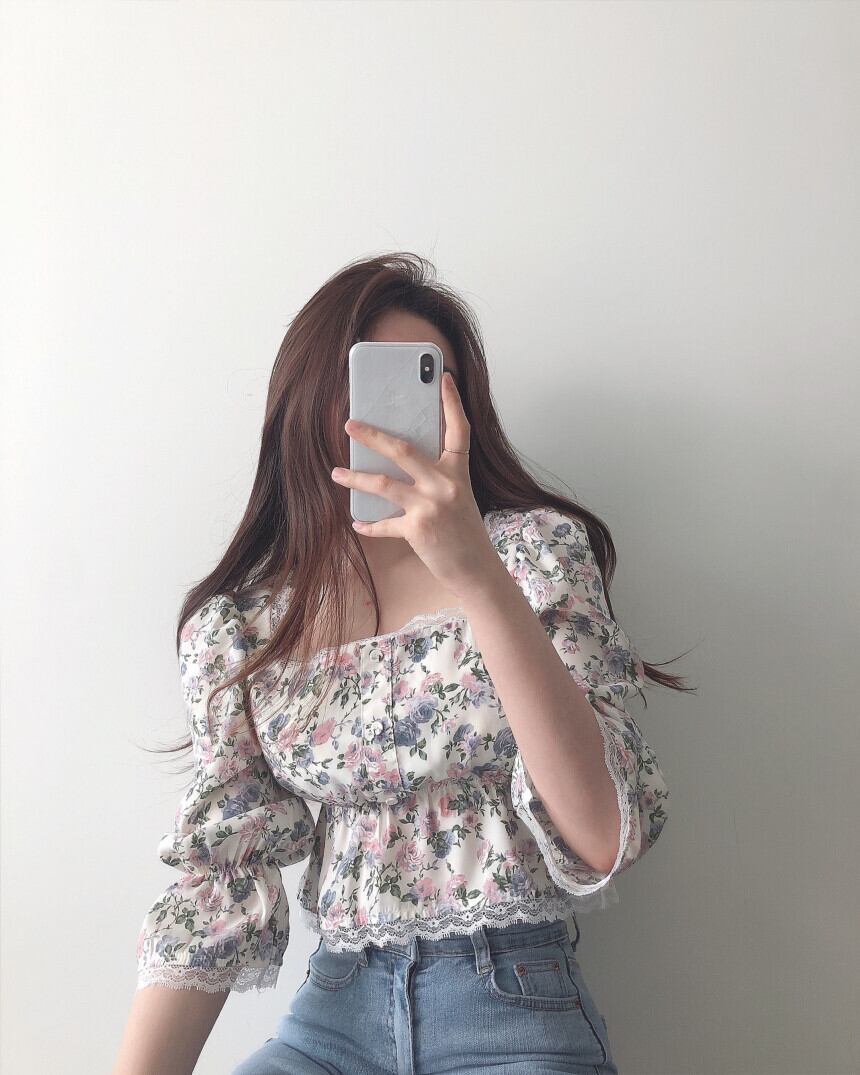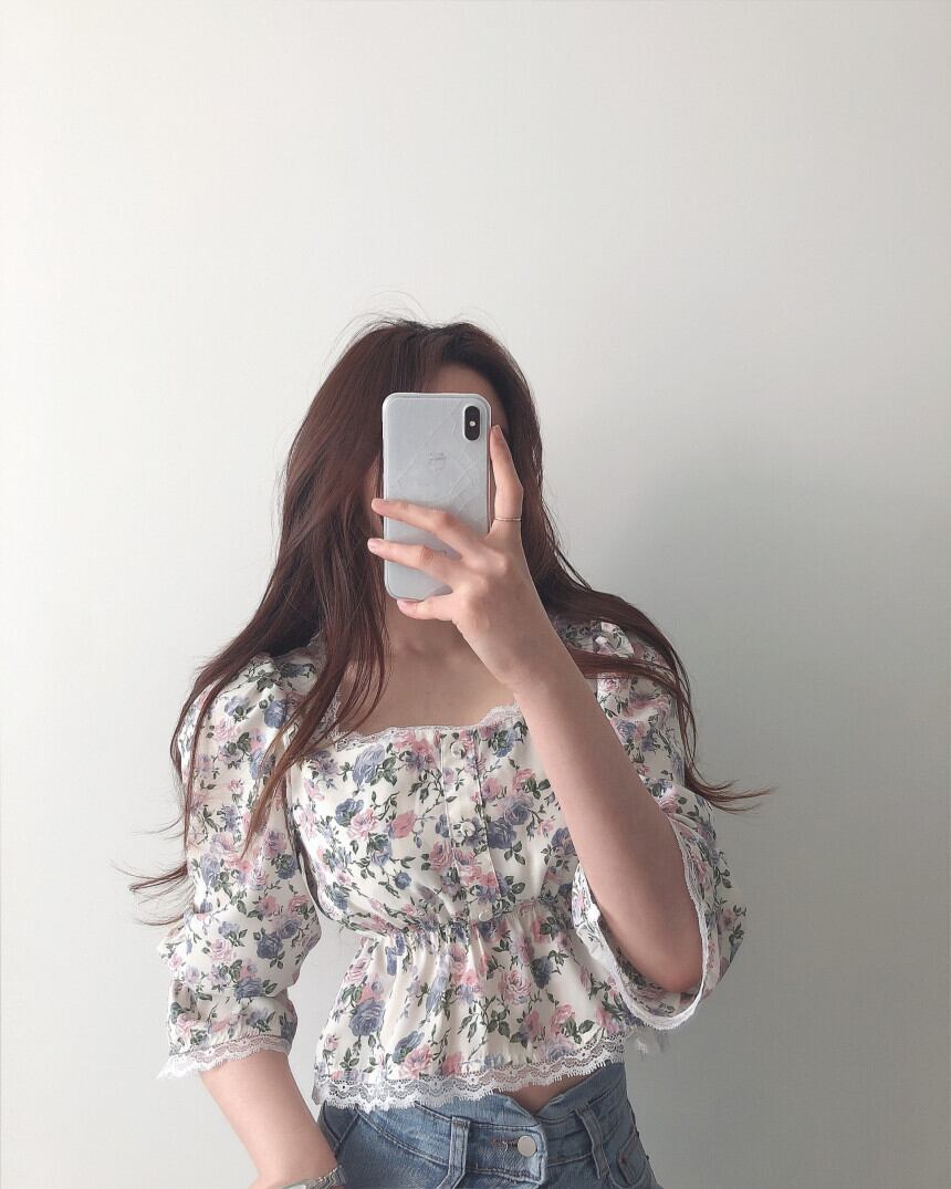 夏の新しいスタイルのシックなレースのスクエアカラーシャツステッチフローラルブラウスウエストフレアスリーブシャツ女性 韓国婦人42798132848