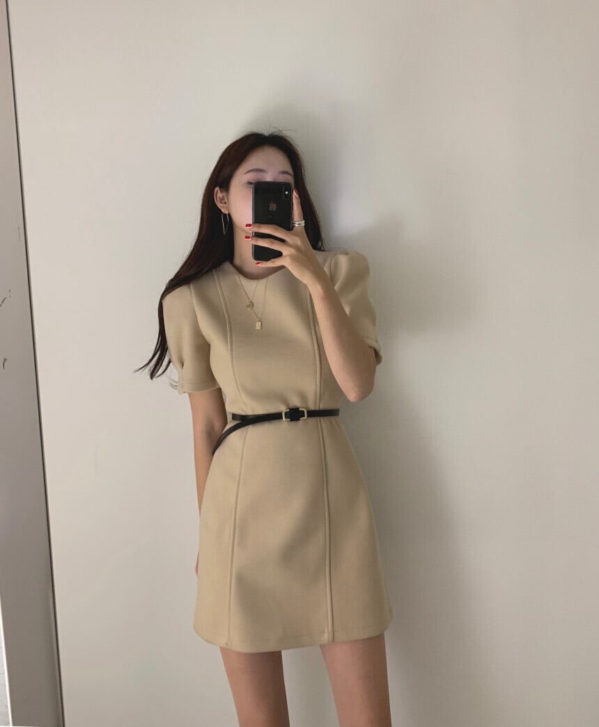 シックなレトロなラウンドネックエレガントな無地のウエストは薄く、短く、小さく、秋と冬のドレスの女性でした 韓国婦人49109643254