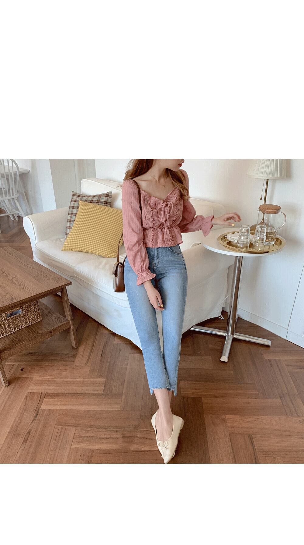 2020年夏の新しいフレンチレトロスリミングシャツ女性デザインセンスニッチ香港スタイルフリルクロップトップ 韓国婦人76663341439