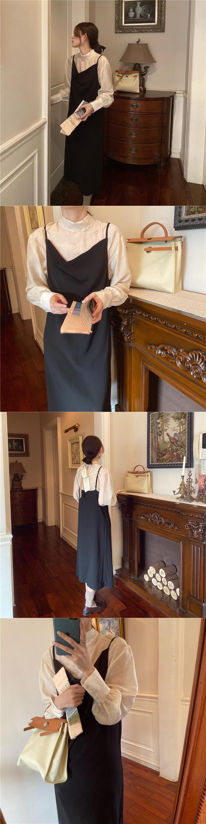繊細な女性は視覚です!気質バックストリーマーシャツ+ヘップバーンスタイルのサスペンダードレス 韓国婦人83353376463