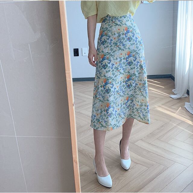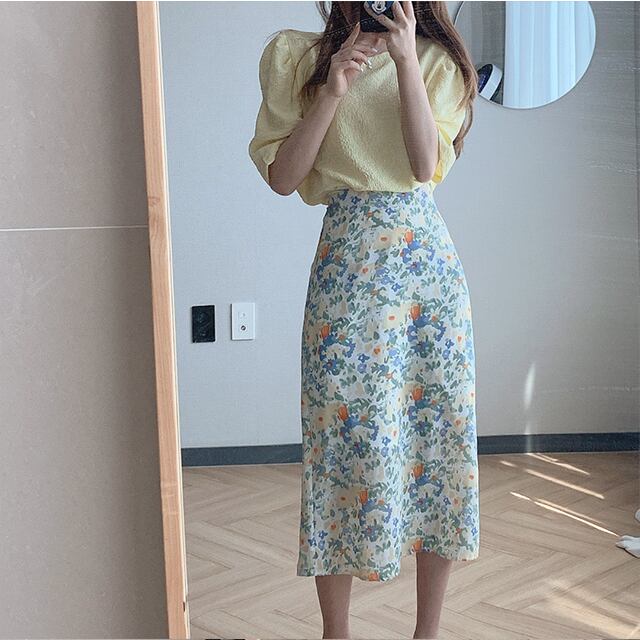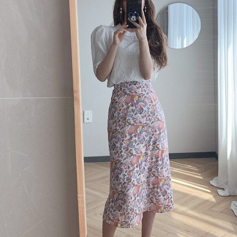 2020年夏の新しいレトロオールマッチラウンドネックパフスリーブトップ+油絵スカートファッションスーツ 韓国婦人31614253382