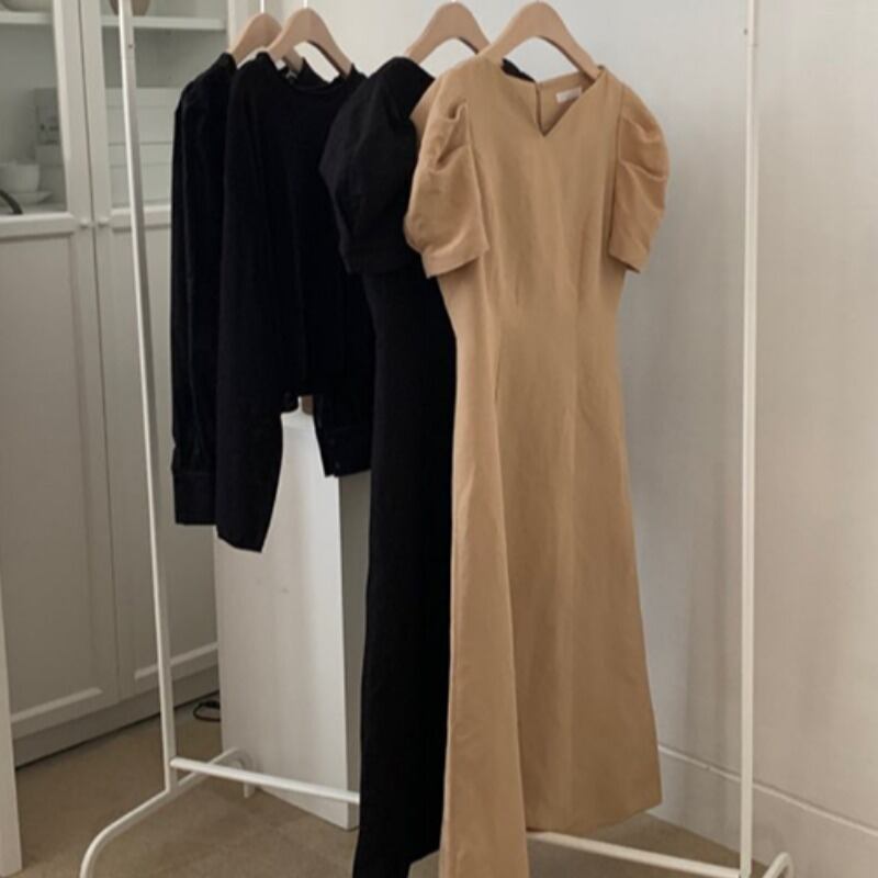 夏のレトロな年齢を減らす薄い黒のドレスヘップバーンスタイルのエレガントな気質の宮殿の袖ウエストの陰謀リトルブラックドレス 韓国婦人27071189943