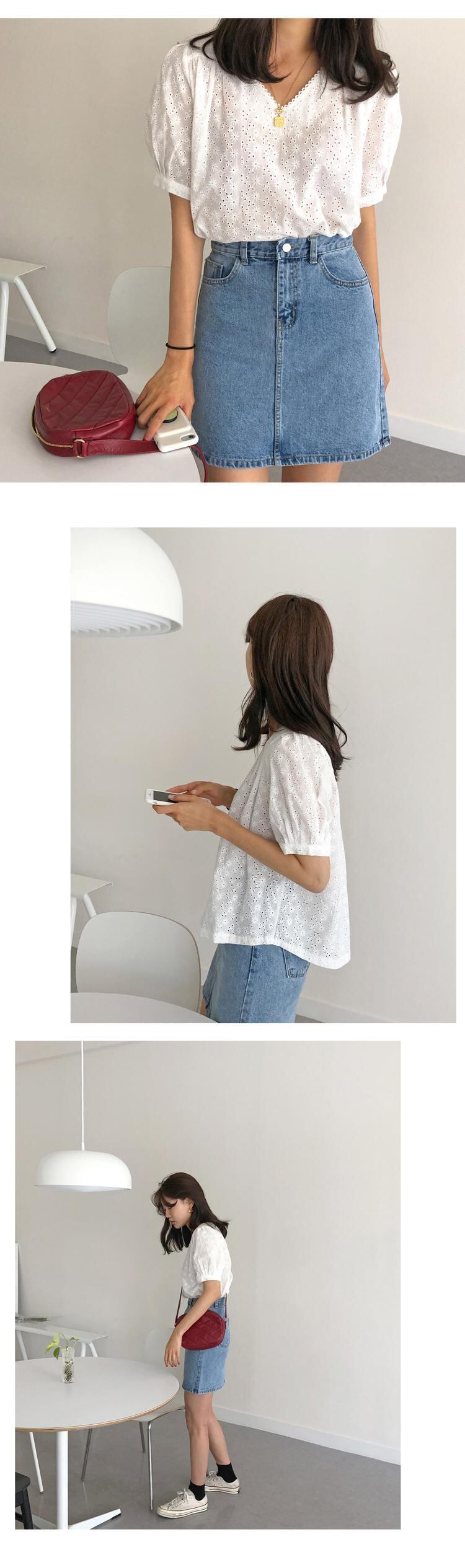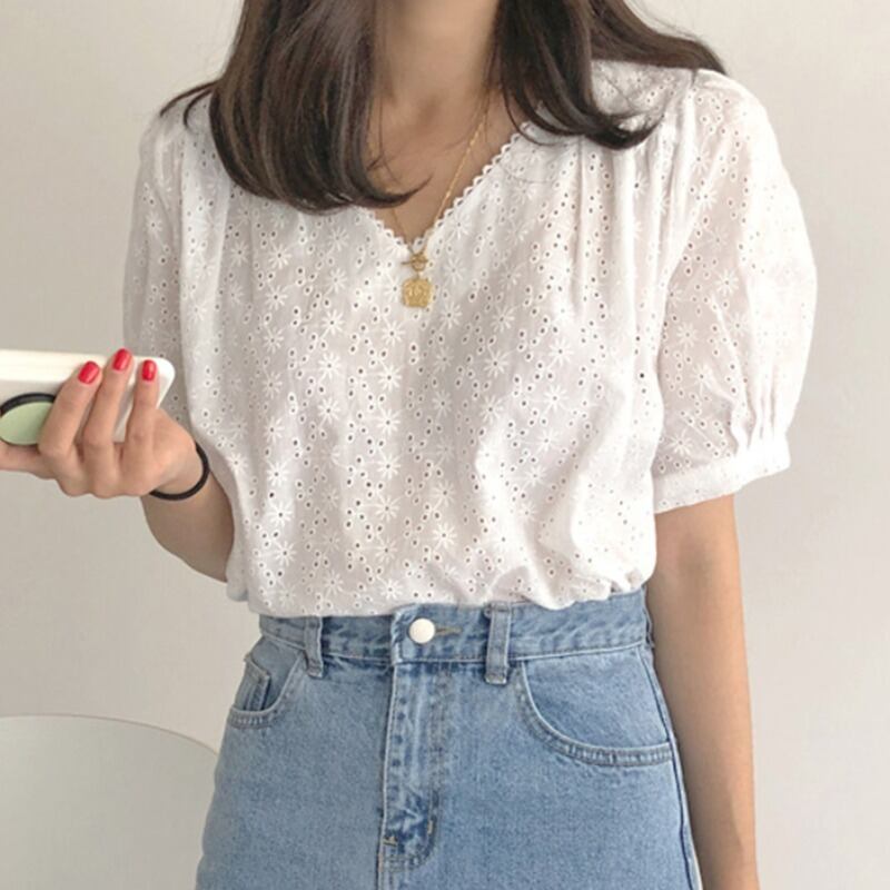 シックなウエスタンスタイルのブラウス2020春と夏の中空の白い半袖シャツ女性の甘くて妖精の刺繍レースシャツ 韓国婦人66145599140