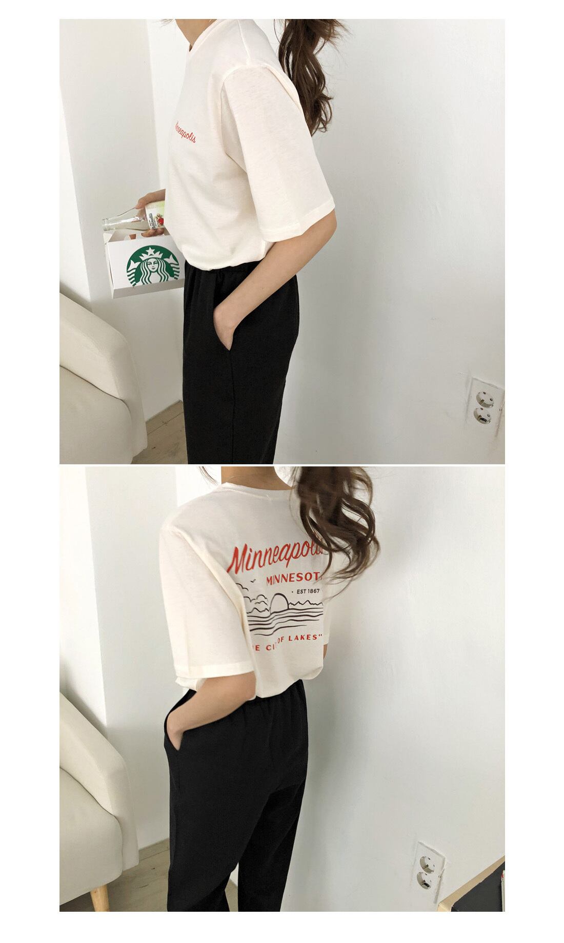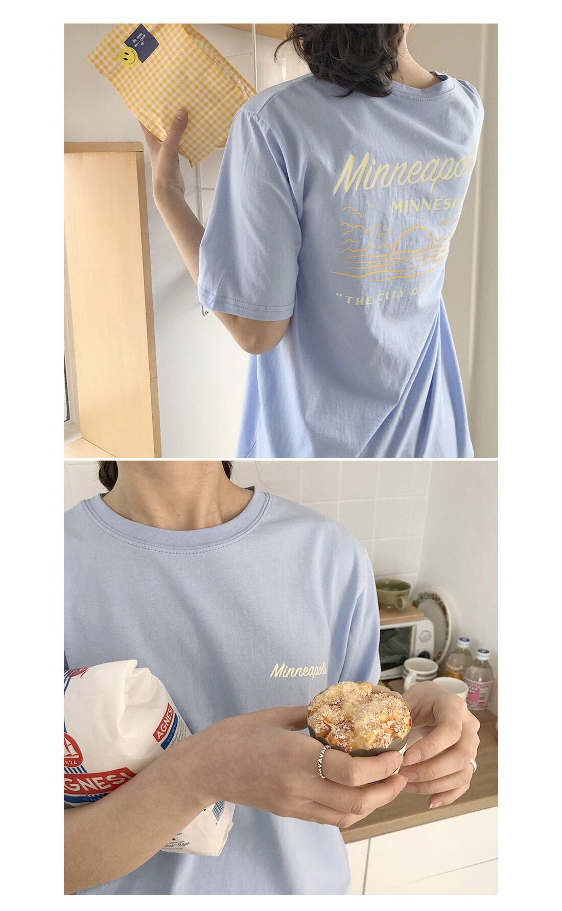 夏の新しいスタイルのレトロな文字の前面と背面の印刷トップスワイルドラウンドネックルーズ半袖Tシャツボトミングシャツ女性 韓国婦人98786778997