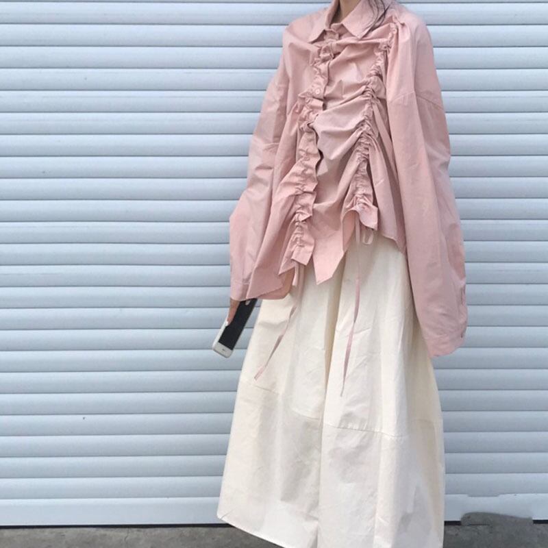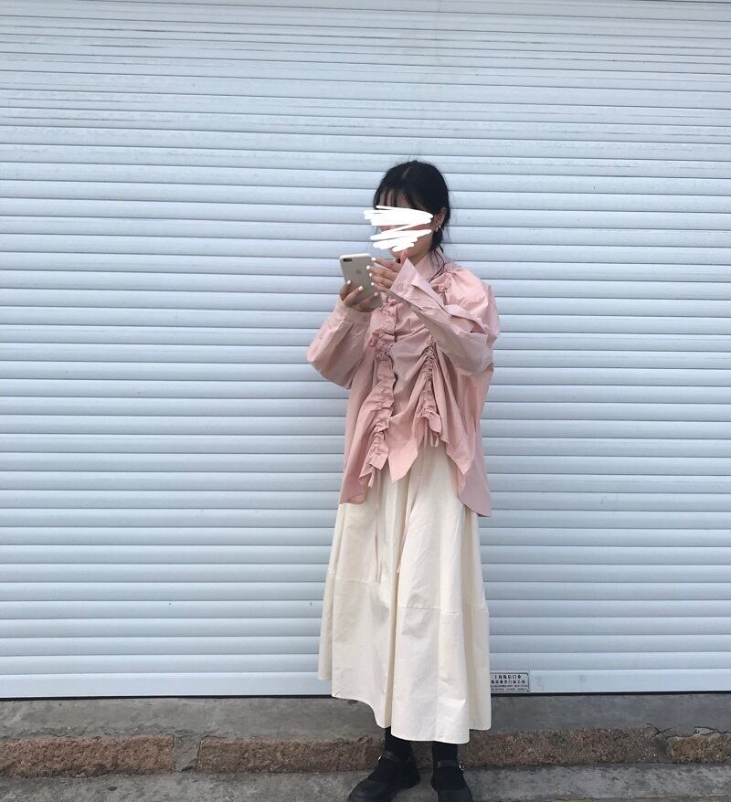 フレンチスタイルのニッチなデザインのファッションスーツ女性の秋の新しいシャツ+伸縮性のあるウエストスカートのツーピーススーツは薄かった 韓国婦人35404127092