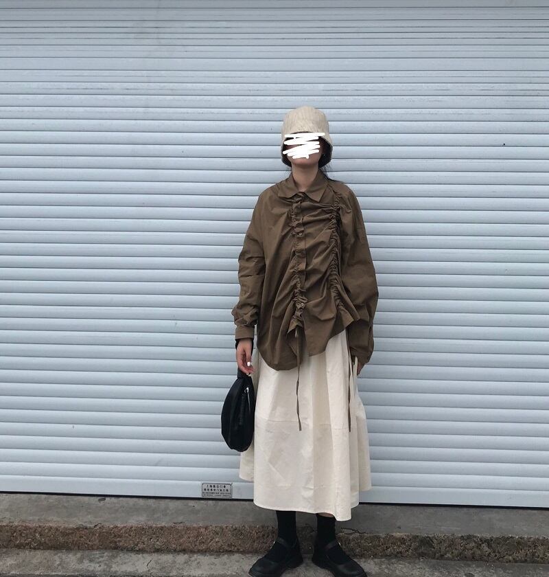 色:黒いシャツ,ピンクのシャツ,コーヒーシャツ,ベージュのスカート