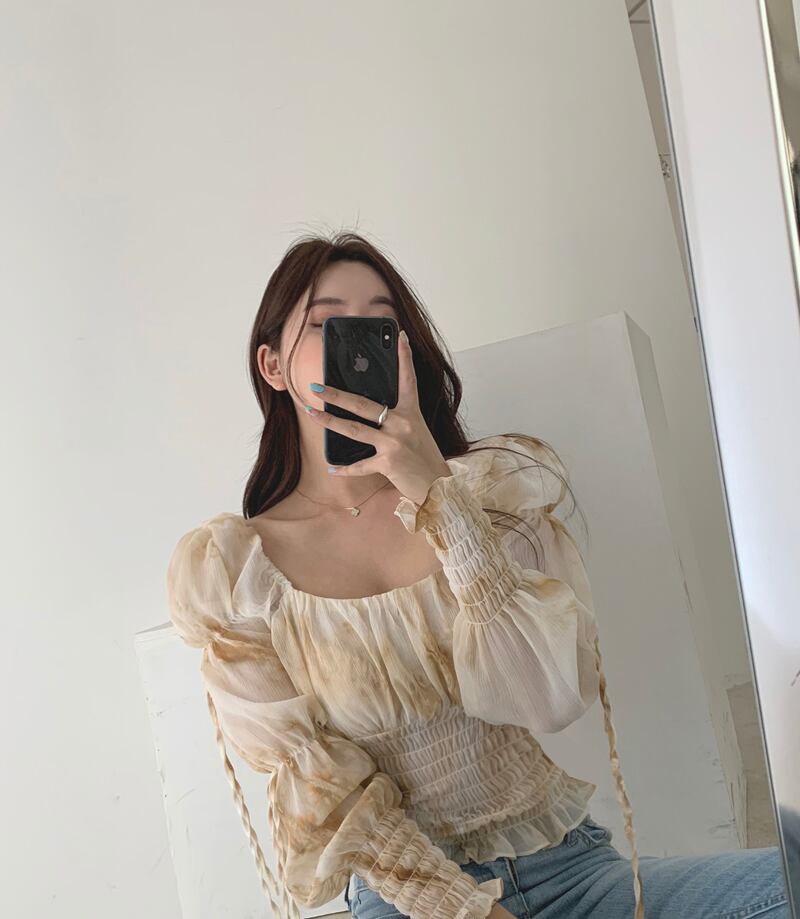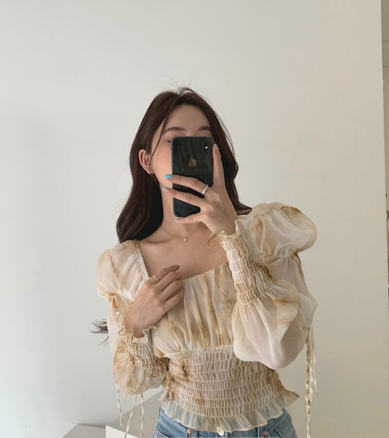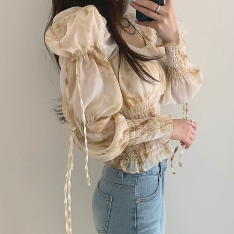 シックでエレガントなライト成熟した気質のデザインセンス壊れた花束ウエスト絞り染め日焼け止めシャツ長袖シフォンシャツシャツ女性 韓国婦人73701226060