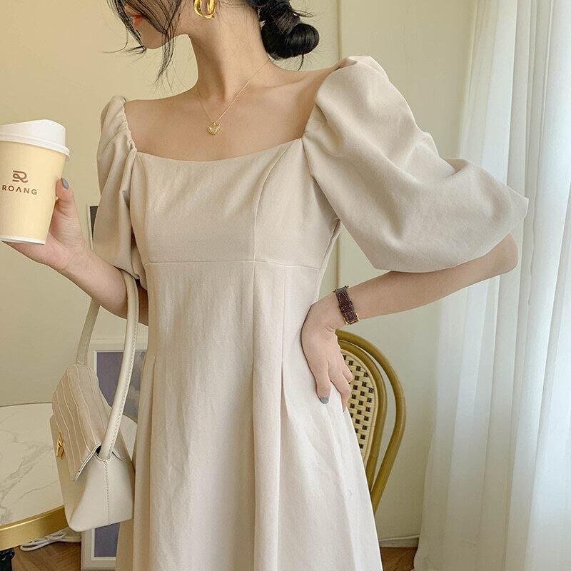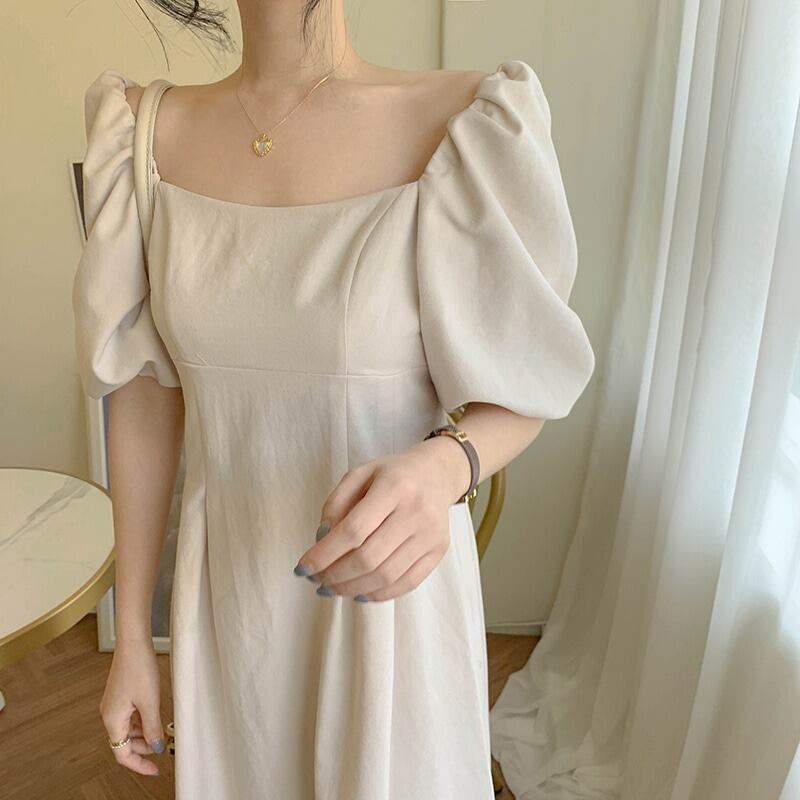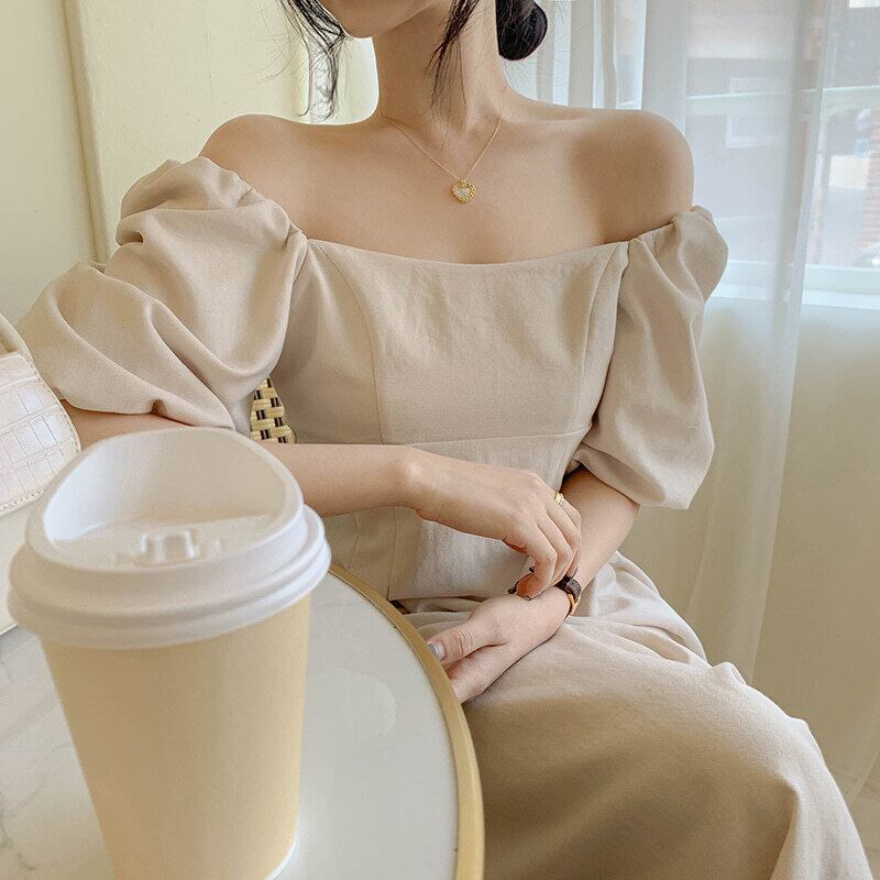 フランスの気質ロングドレス香港フレーバーレトロドレスパフスリーブ片方の肩スーパーフェアリーライト成熟した夏の新しいスタイルの女性 韓国婦人31666112733