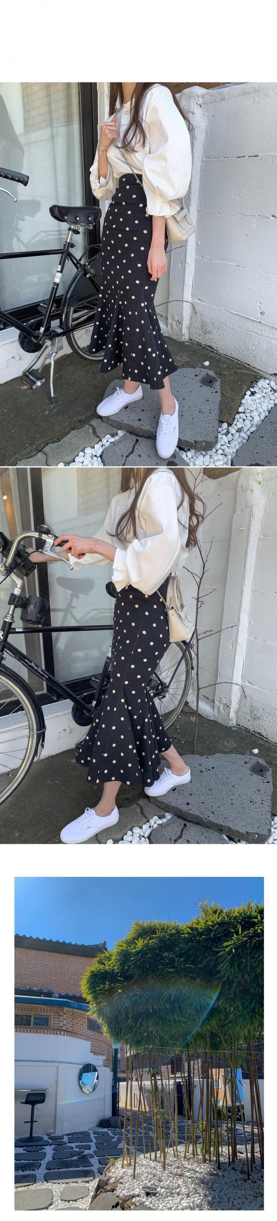 夏のシックなニッチベースTシャツトップ+レトロウェーブドットフィッシュテールスカートツーピーススカートメス 韓国婦人60085595647