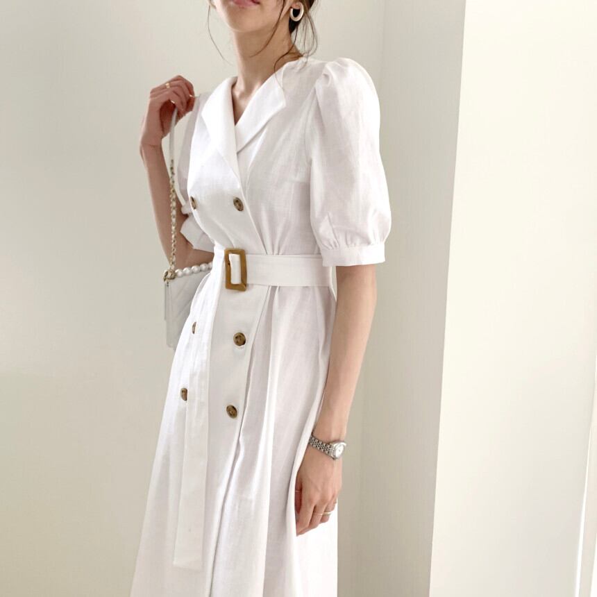 フランスのレトロなスーツのスカートの綿とリネンのドレス2020新しい女性の夏のミドル丈スリムで薄いダブルブレストのスカート 韓国婦人64371527021