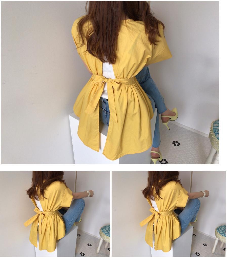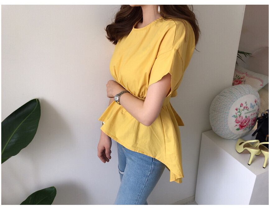シックな夏の優しくて薄いラウンドネックバックボウボウ慎重にマシンウエスト不規則な半袖シャツの女性 韓国婦人31168556736