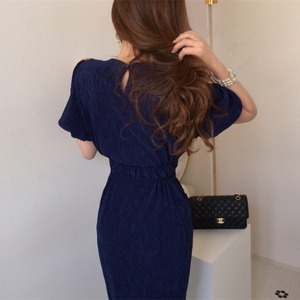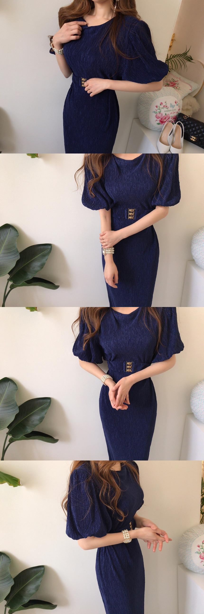 シックでエレガントな気質ラウンドネックネクタイウエストスリムスリム膝上ロングランタンスリーブドレス女性 韓国婦人47761782987