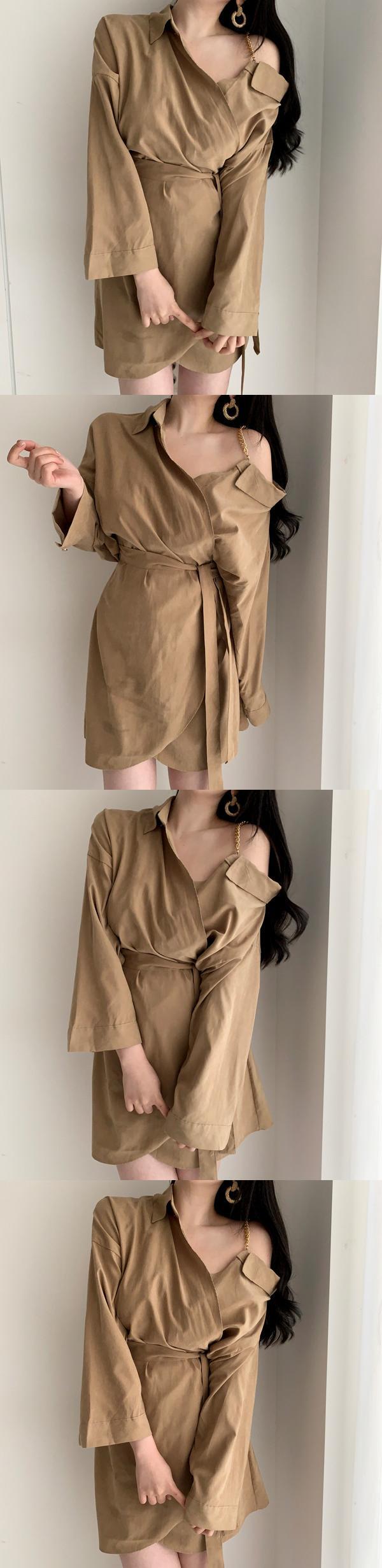 シックで丁寧なマシンデザインセンスリークショルダーウエストベルトウエストイレギュラースエードシャツドレス女性 韓国婦人52362696136