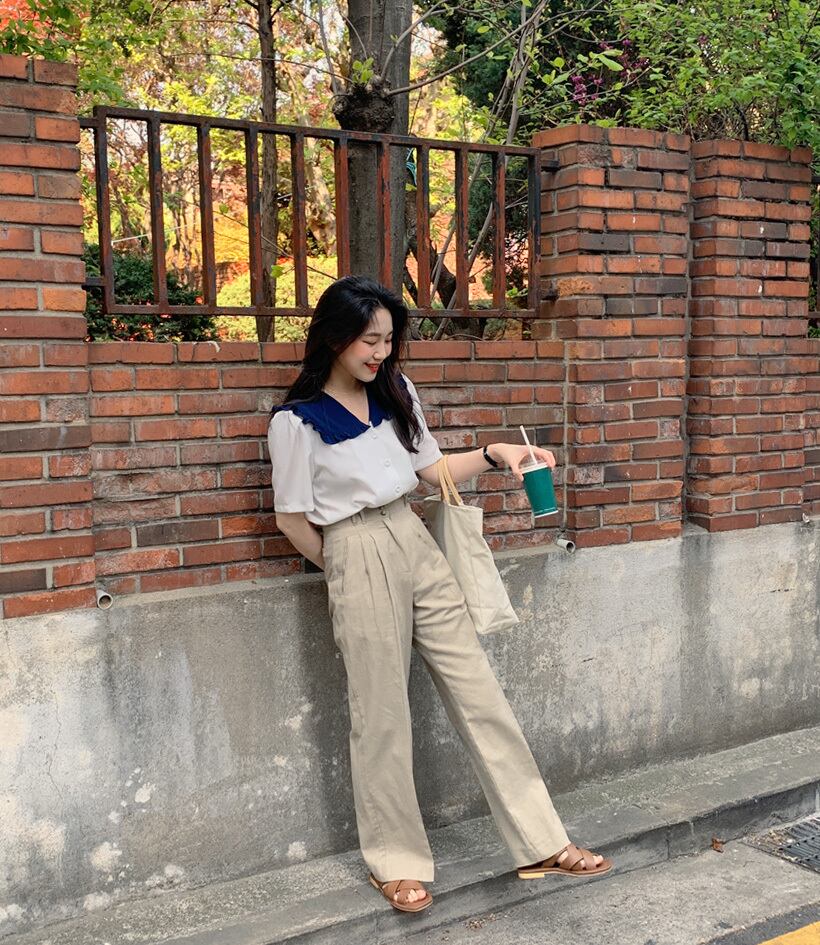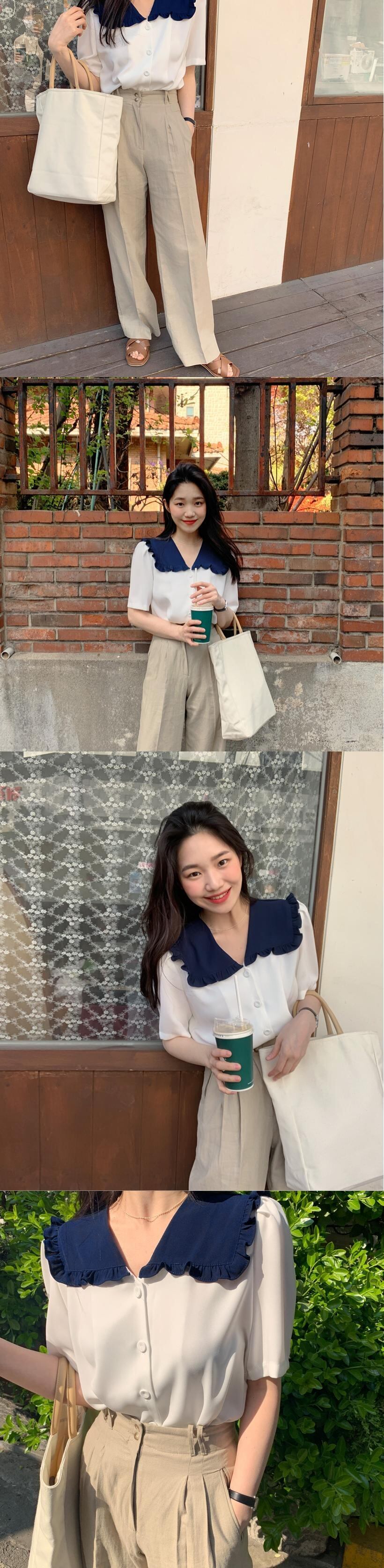 insニッチレトロドールカラーキクラゲヒットカラーデザインシングルブレストルーズワイルド半袖シャツ女性 韓国婦人37340537742