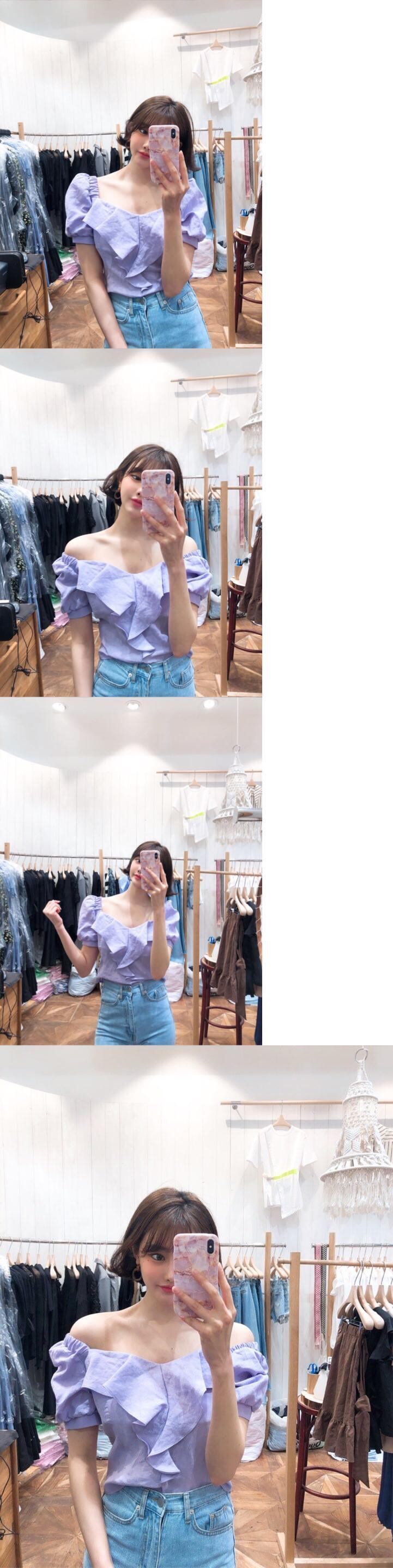 夏の新しいスタイルは甘い気質の宮殿スタイルの正方形の襟のデザインのブラウスは薄い鎖骨シャツの女性を示しています 韓国婦人29144359446