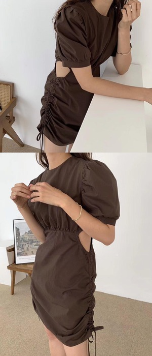 シックな性格ワイルドラウンドネック巾着ウエスト中空デザインセンスルーズパフスリーブドレススカート女性 韓国婦人54759589945