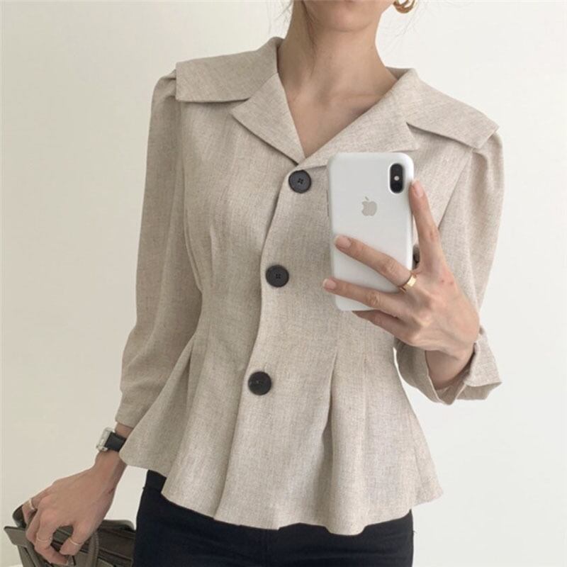 シックなフレンチエレガントなスーツの襟3ボタンプリーツデザインスリムウエスト長袖シャツトップ女性のセンス 韓国婦人57449956733