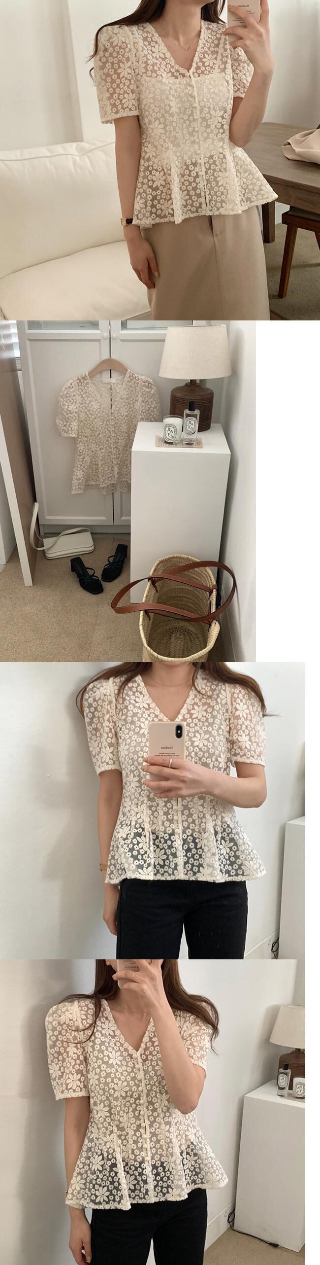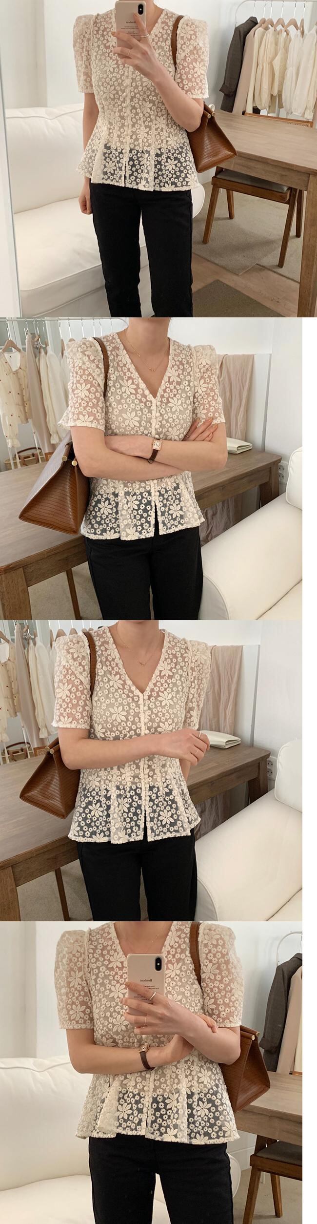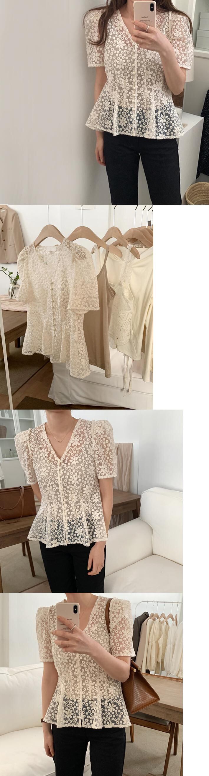 シックなレトロなウエスタンスタイルのディープVネックシングルブレストウエストシンニングパフスリーブ重工業の視点刺繡シャツ女性 韓国婦人97630142216