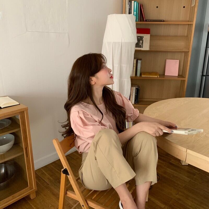 シックな夏のオールマッチ年齢削減バブルスリーブネクタイラウンドネックウエスタンスタイルホワイトルーズ半袖シャツブラウス 韓国婦人49953515788